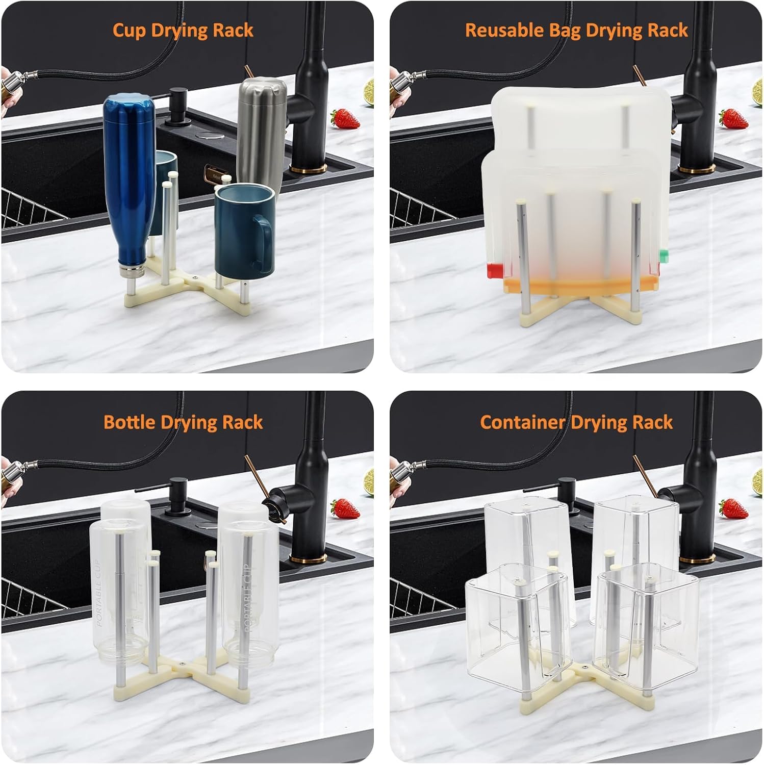 - ăMulti-Purpose DesignăAside from drying reusable food bags, you can also use it as a water bottle dryer rack, cup drying rack, and mason jars drying rack. just put them on the metal rod, drain the water as fast as possible.