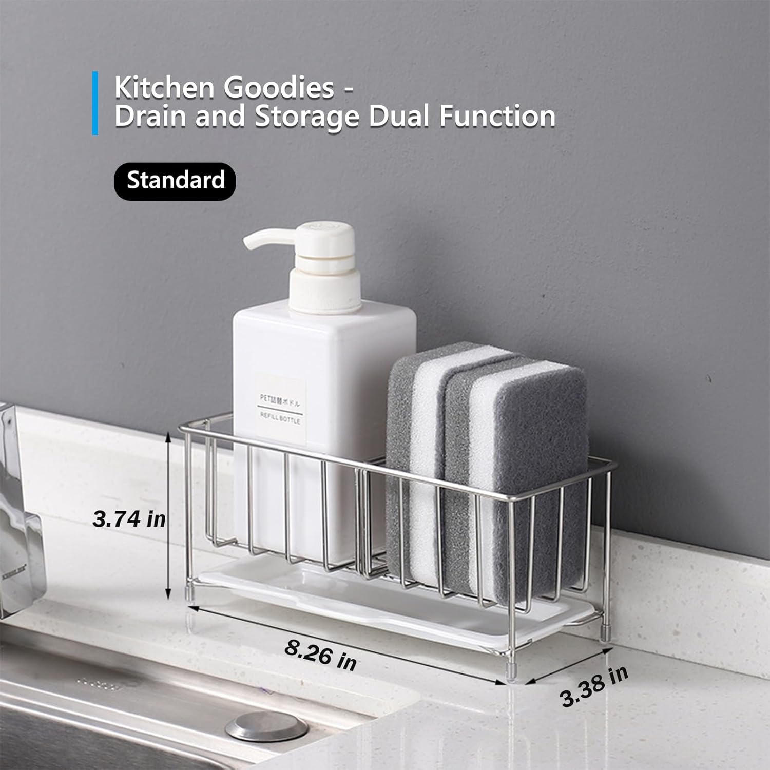 - ăSize & CapacityăThe kitchen sink caddy is perfect for kitchens with limited space, it measures only 8.5"*3.4"*3.5" and can hold detergent bottles, sponge brushes, sink plugs, vegetable peelers. Kvaciva kitchen sink caddy, save more countertop space.
