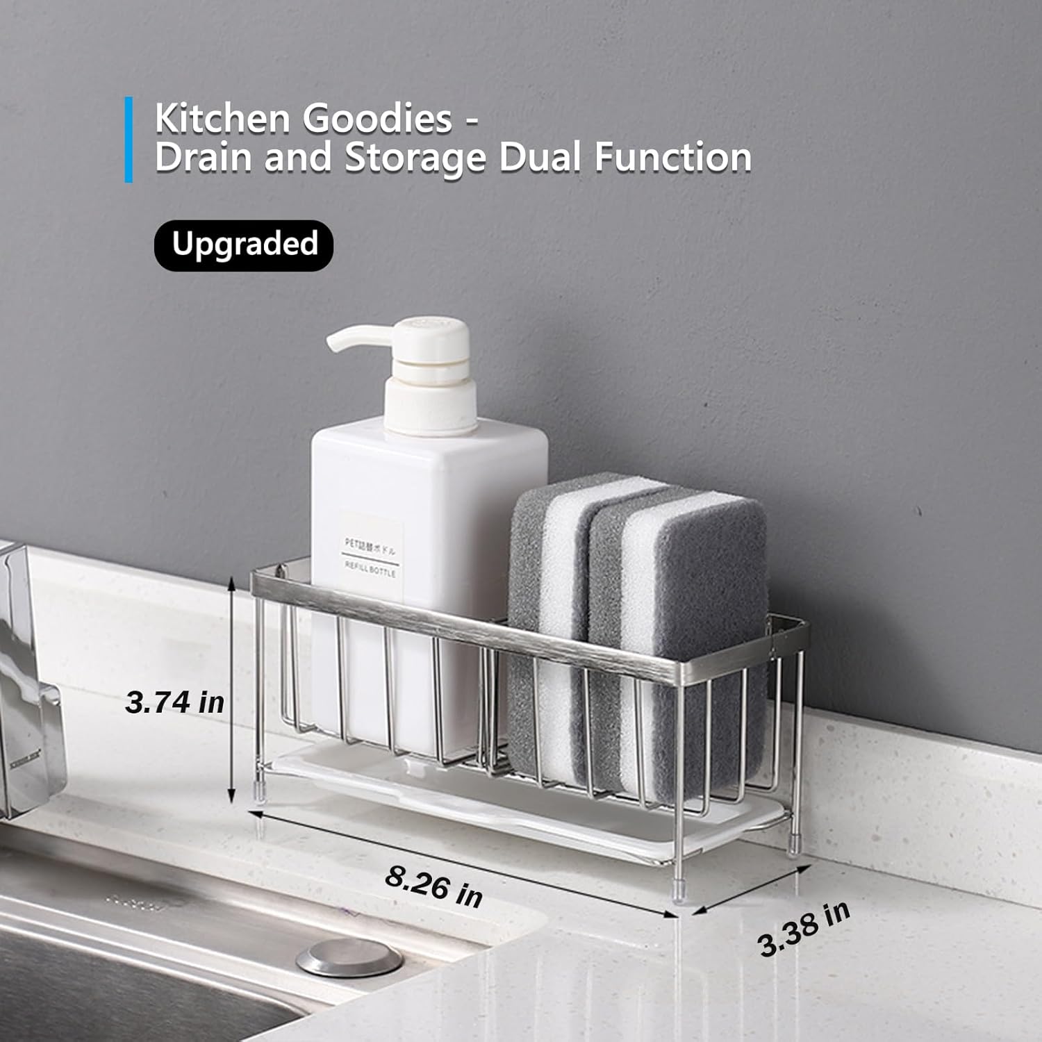 - ăMade of High-Quality MaterialăKvaciva kitchen sink sponge holder is made of high-quality stainless steel, which effectively prevents rust and deformation. The bottom has a non-slip rubber pad to effectively protect the countertop from scratches. There is a 1cm gap at the bottom to prevent debris from easily accumulating. .You can easily treat countertop stains with a running faucet, making the most of your countertop space.