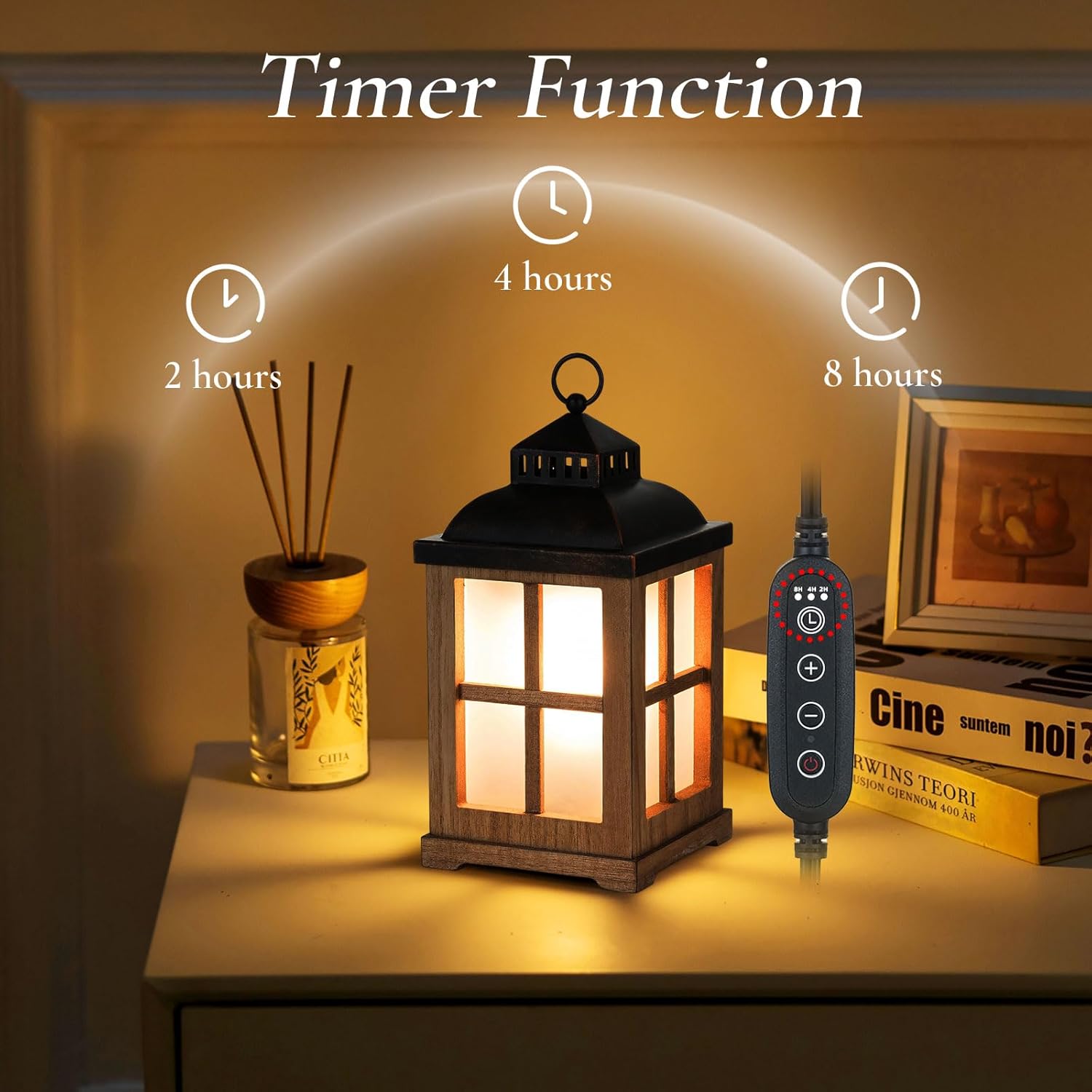 - 【2-IN-1 Lantern Wax Warmer】A classic lantern made from wood, glass panels, a brown metal lid & melt tray. This lantern acts as more than just home decor, it's an electric cute scented wax burner. Simple and sturdy, it brings a farmhouse touch to your home decor.