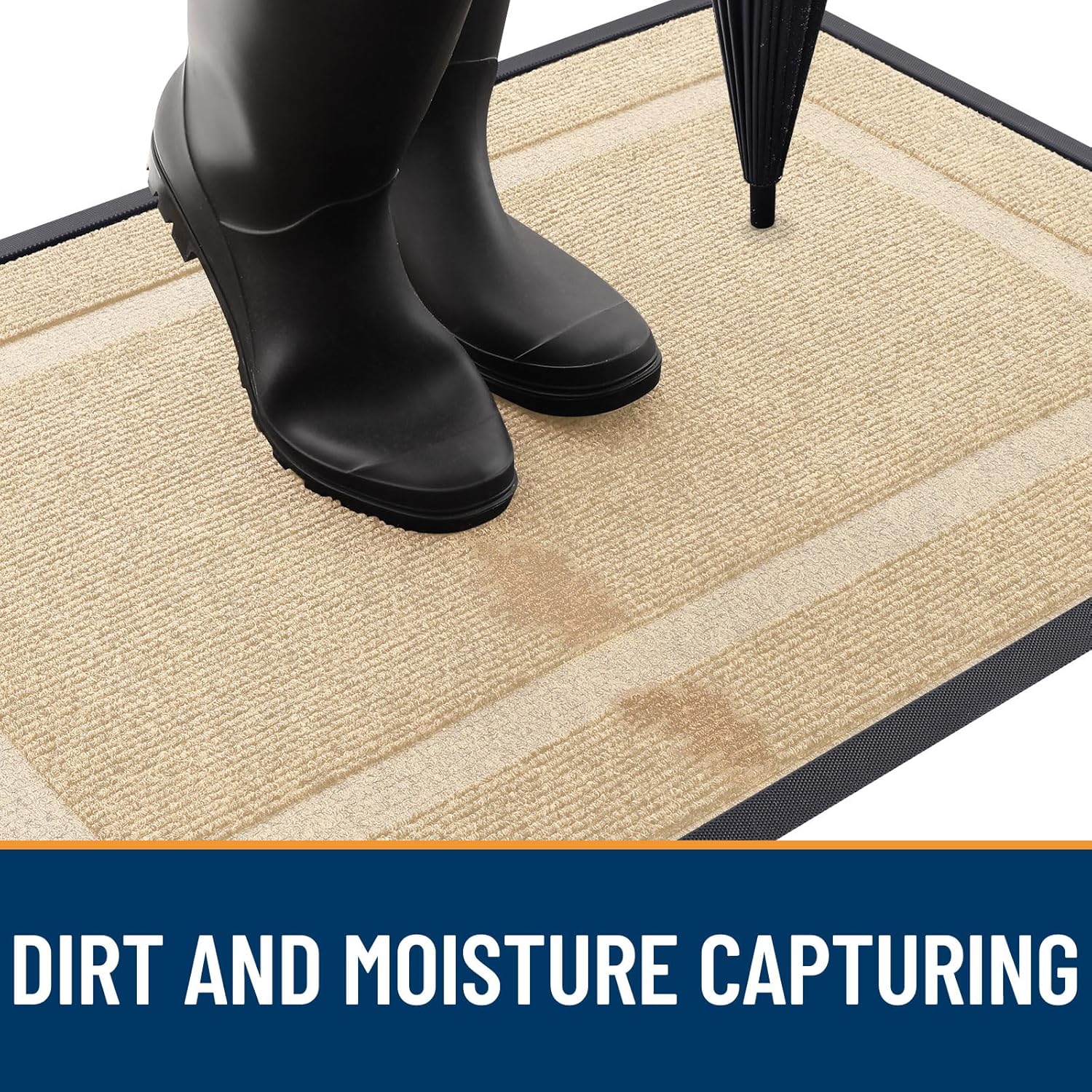 OLANLY Front Door Mat Indoor Outdoor Entrance, Waterproof All-Season, All-Weather Doormat, Sturdy Natural Rubber, Fade Resistant, Low Profile, Easy Clean Patio Porch Entryway Mat, 71x47, Beige