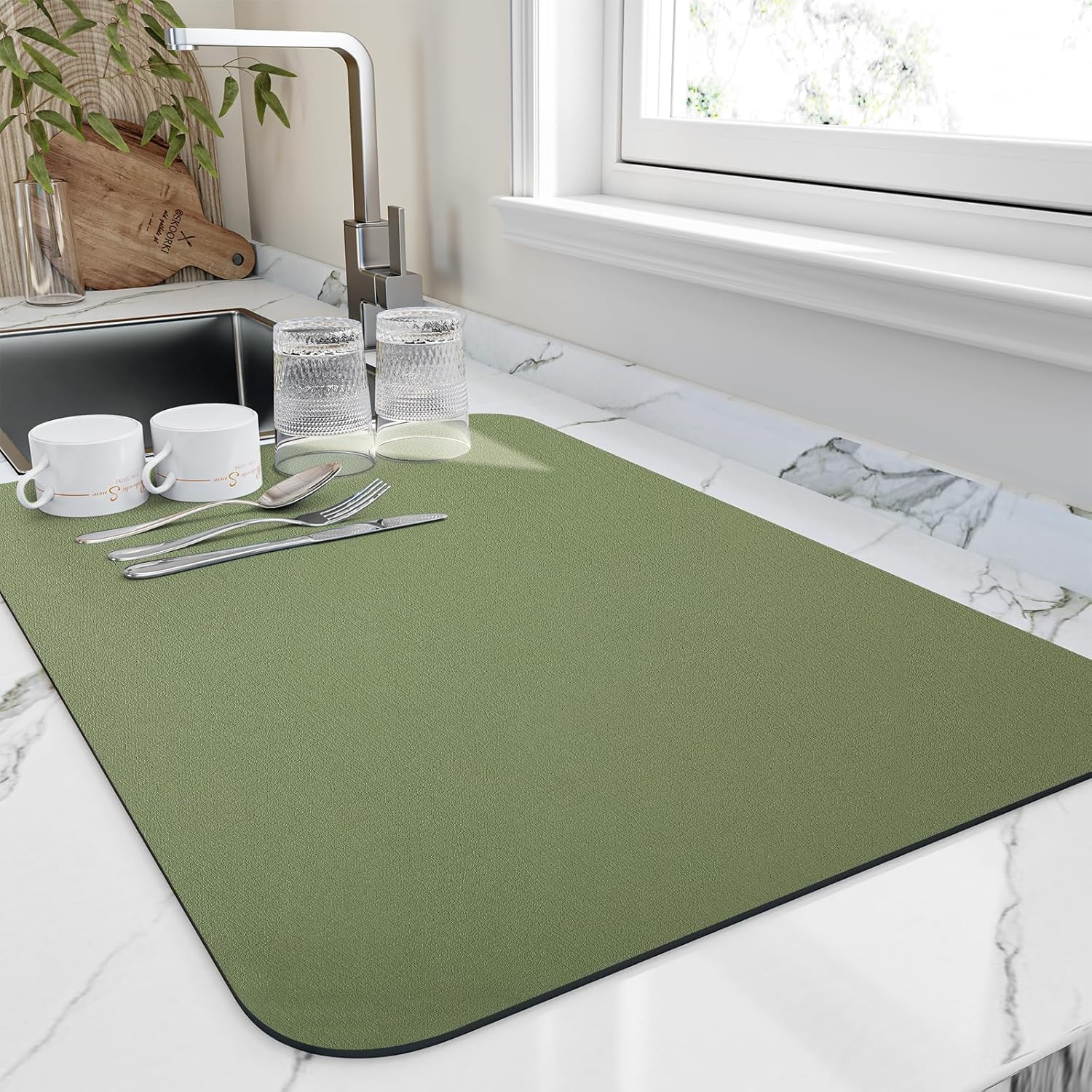Dish Drying Mat for Kitchen Counter, Heat Resistant Drainer Mats with Non-slip Rubber Backed, Hide Stain Kitchen Super Absorbent Draining Mat, Easy to Clean Dish Rack Pad, Green 16"x20"