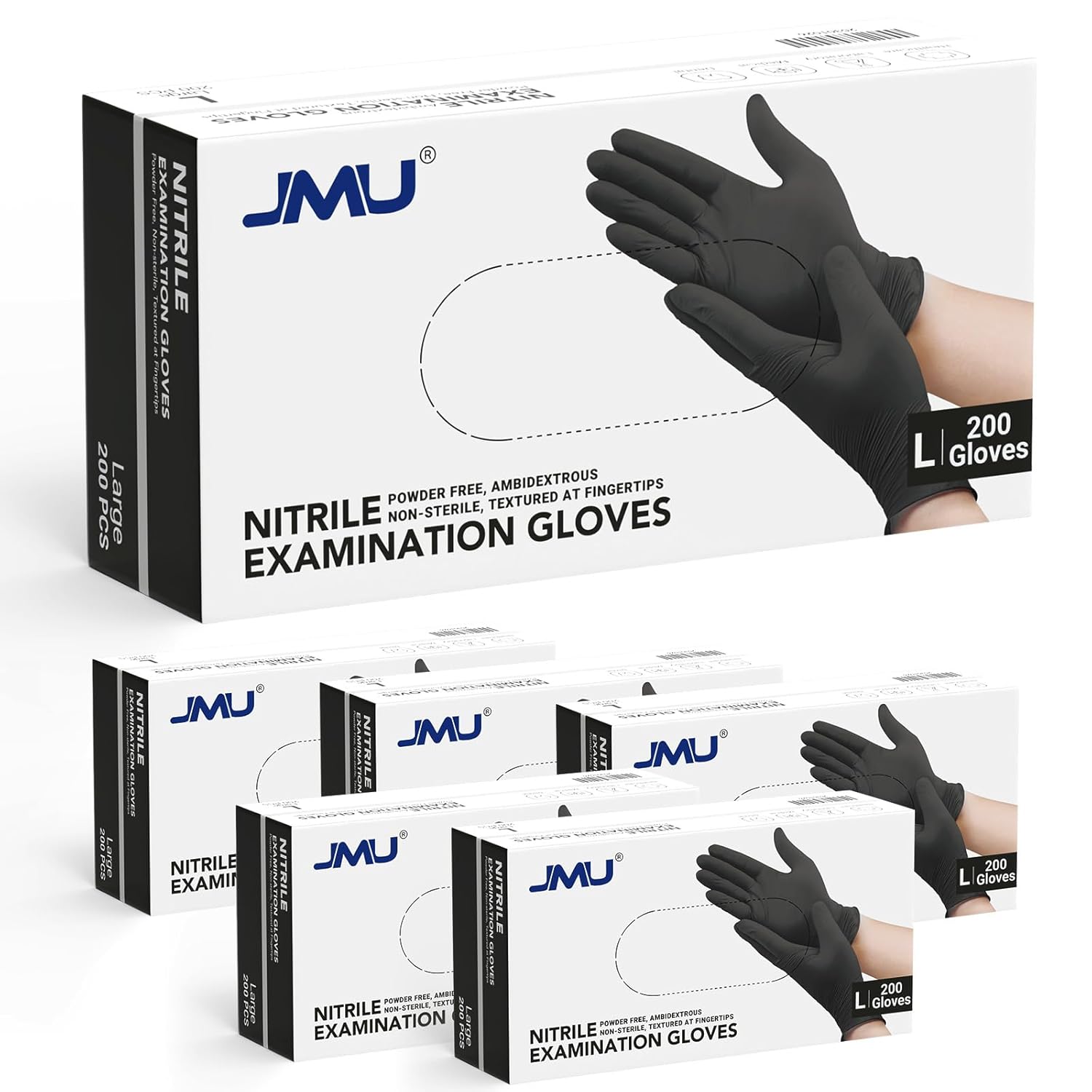 JMU Black Nitrile Gloves Large Case of 1200, 3.5Mil, Latex Free & Powder Free Medical Exam Gloves