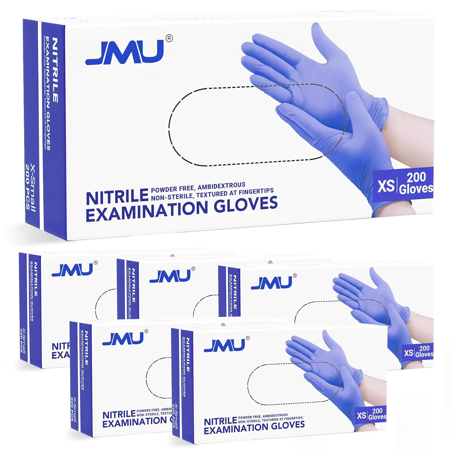 JMU XS Nitrile Gloves, Case of 1200, Powder-Free and Latex-Free Disposable Medical Exam Gloves