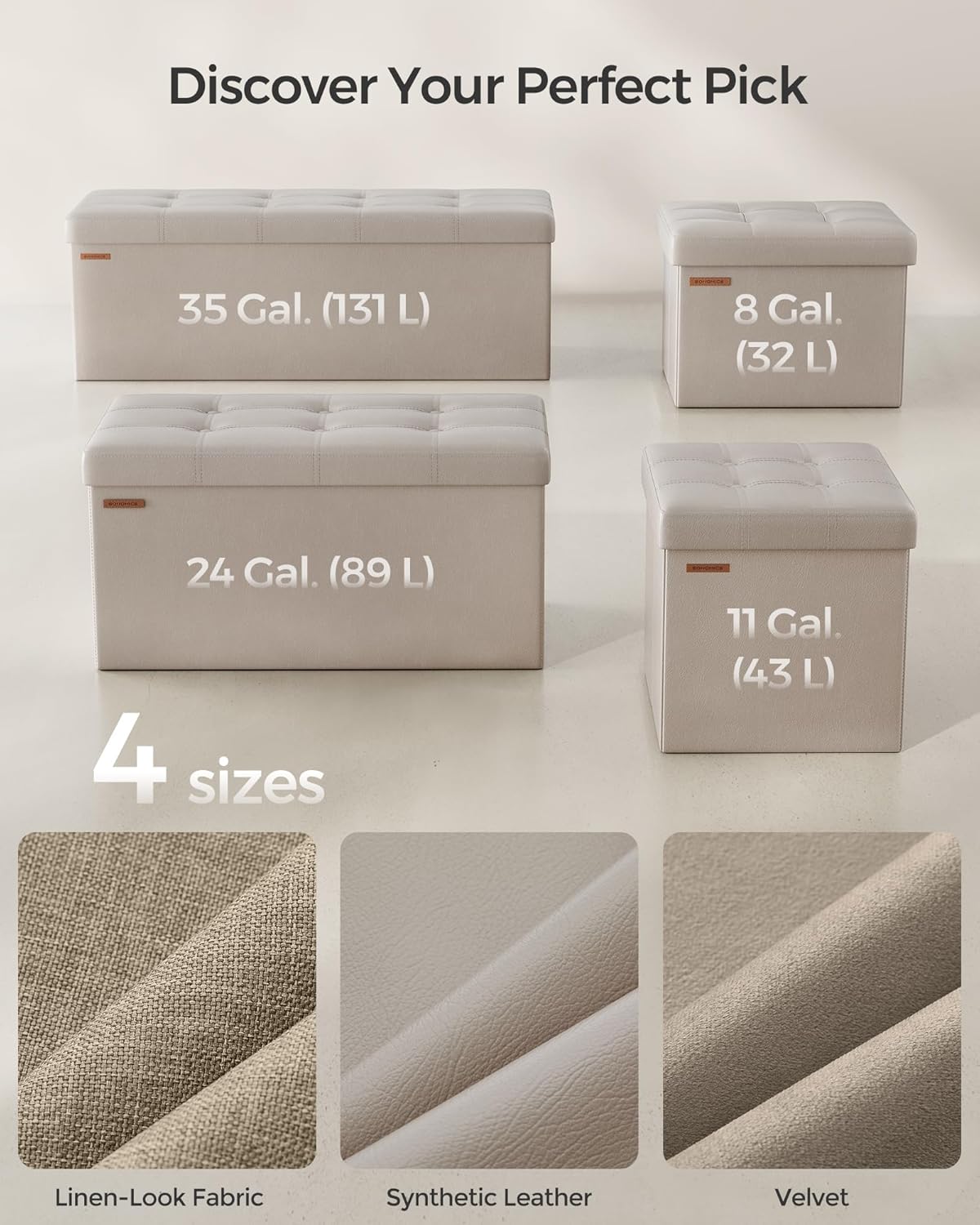 - ăQUICK ASSEMBLY, EASY FOLDAWAYăThis storage ottoman from the SONGMICS MAZIE Collection has a foldable design that allows quick setup in seconds by simply inserting the bottom panel. Easily fold and store it under the bed or in a closet when not in use