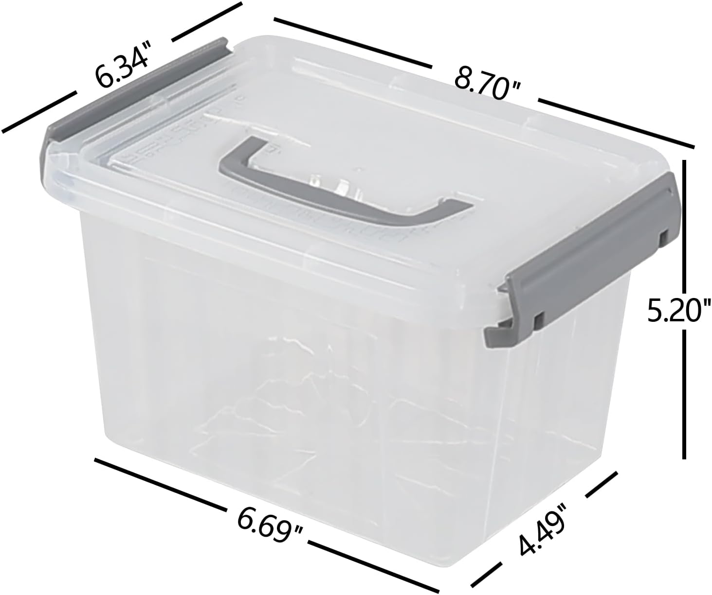 3 L Small Clear Storage Latch Box, 6 Pack Plastic Stackable Organizer Containers with Lids