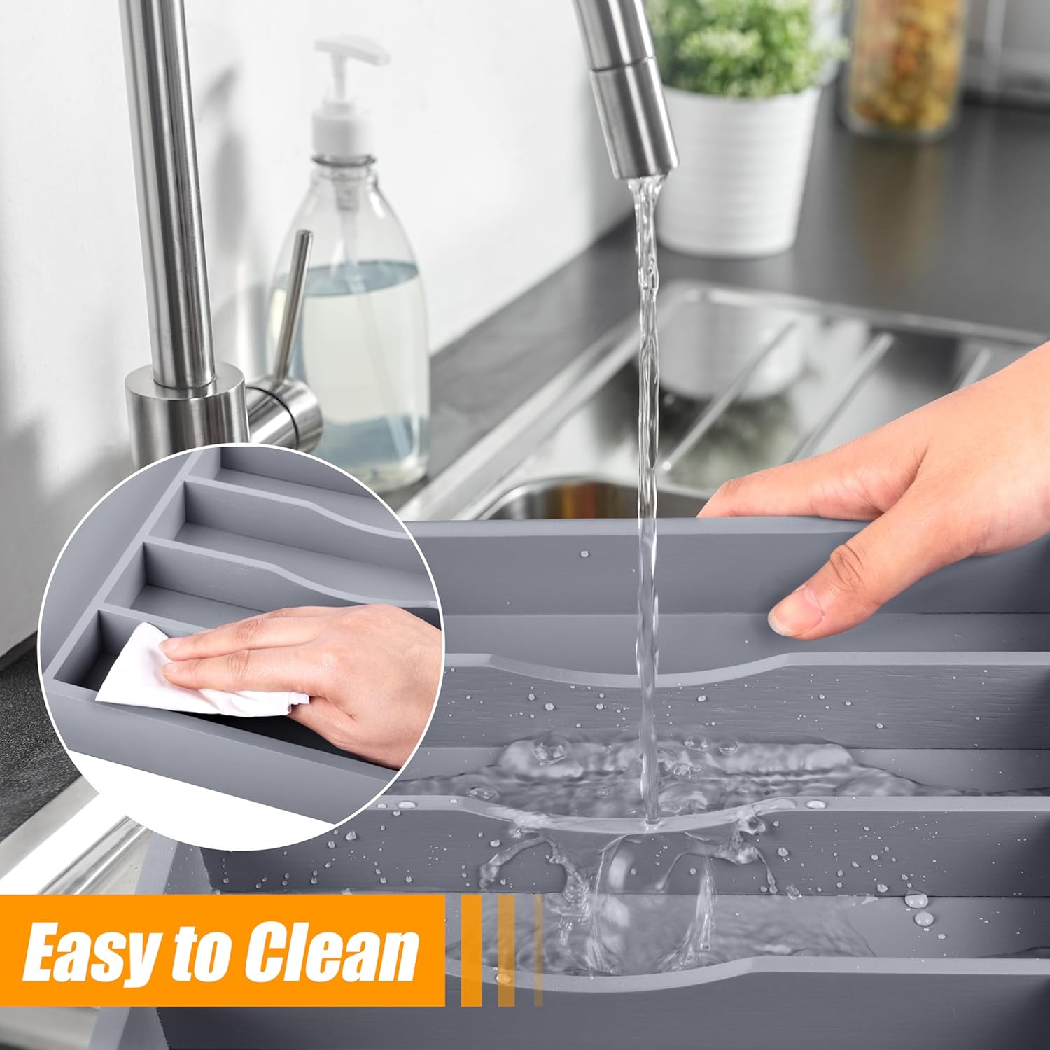 - â ăPerfect premium bambooăOur utensil silverware drawer organizer flatware cutlery tray is crafted from natural bamboo that has been grown for over 4 years. Each silverware drawer organizer made of bamboo is meticulously handcrafted by seasoned artisans to ensure a smooth, splinter-free surface. You can confidently allow your family or children to use our silverware drawer organizer. Unlike plastic and metal drawer organizers, our utensil holder is water-resistant and odor-resistant, making it perfect for long-term use.