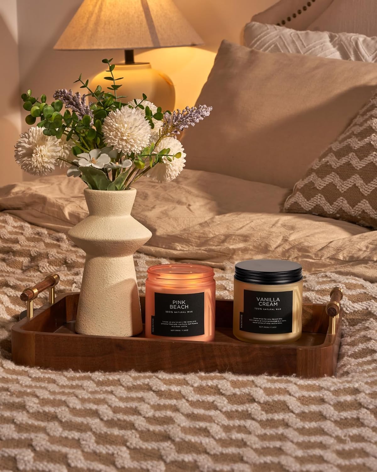- ā³ Room Filling & Long Lasting - These Scented candles are designed to burn for 60-70 hours when properly cared for. The net weight of wax is 11.6oz/330g. Recommended to use in rooms smaller than 20 square meters. Our high-quality formulas have been tested to perform for an extended period of time.