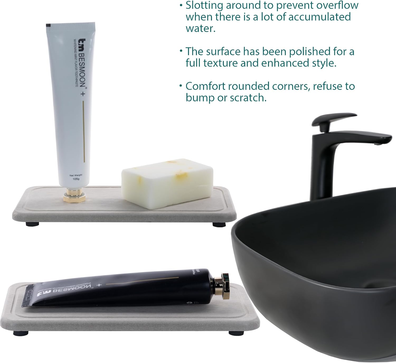 2 Pcs Water Absorbing Stone Trays, Kitchen/Bathroom Sink Soap Dish, Diatomite Tray Used for Hand Soap & Cosmetic Bottles in The Modern Home, 4" W x 8.3" L, Gray