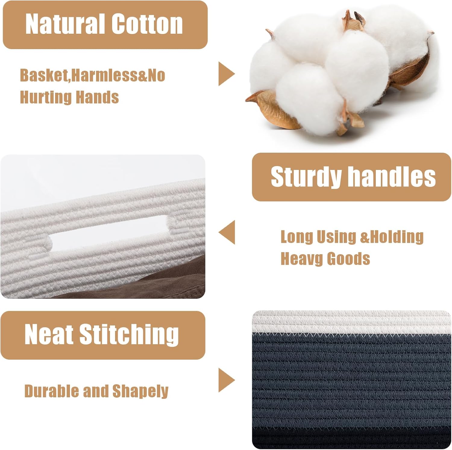 - Sturdy & Long-lasting: Soft storage baskets are made of high quality natural cotton rope, which are exceptionally durable & sturdy and firm enough in regular use. They can keep their shape even with heavy loads