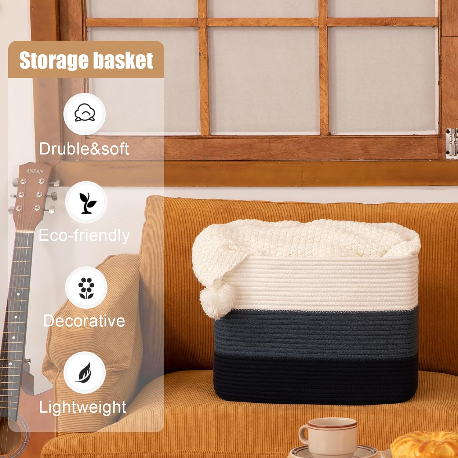 - Soft & Friendly: Woven cotton thread is very soft, skin-friendly. No odor or sharp corners, safe for kids, baby, elders and pets. Ideal for nurseries and playrooms. The soft blanket basket will not make scratches on your floor, wall or your furniture