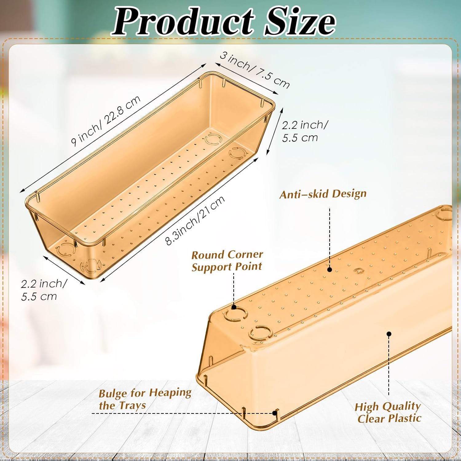 - Stackable to Save Space: these storage trays for organizing can be easily stacked together when not in use to save your space, stable and not easy to fall; The champagne color makes it easy for you to view the content inside, so that you do not need to spend much time looking for the stuffs you need and mess the drawer up