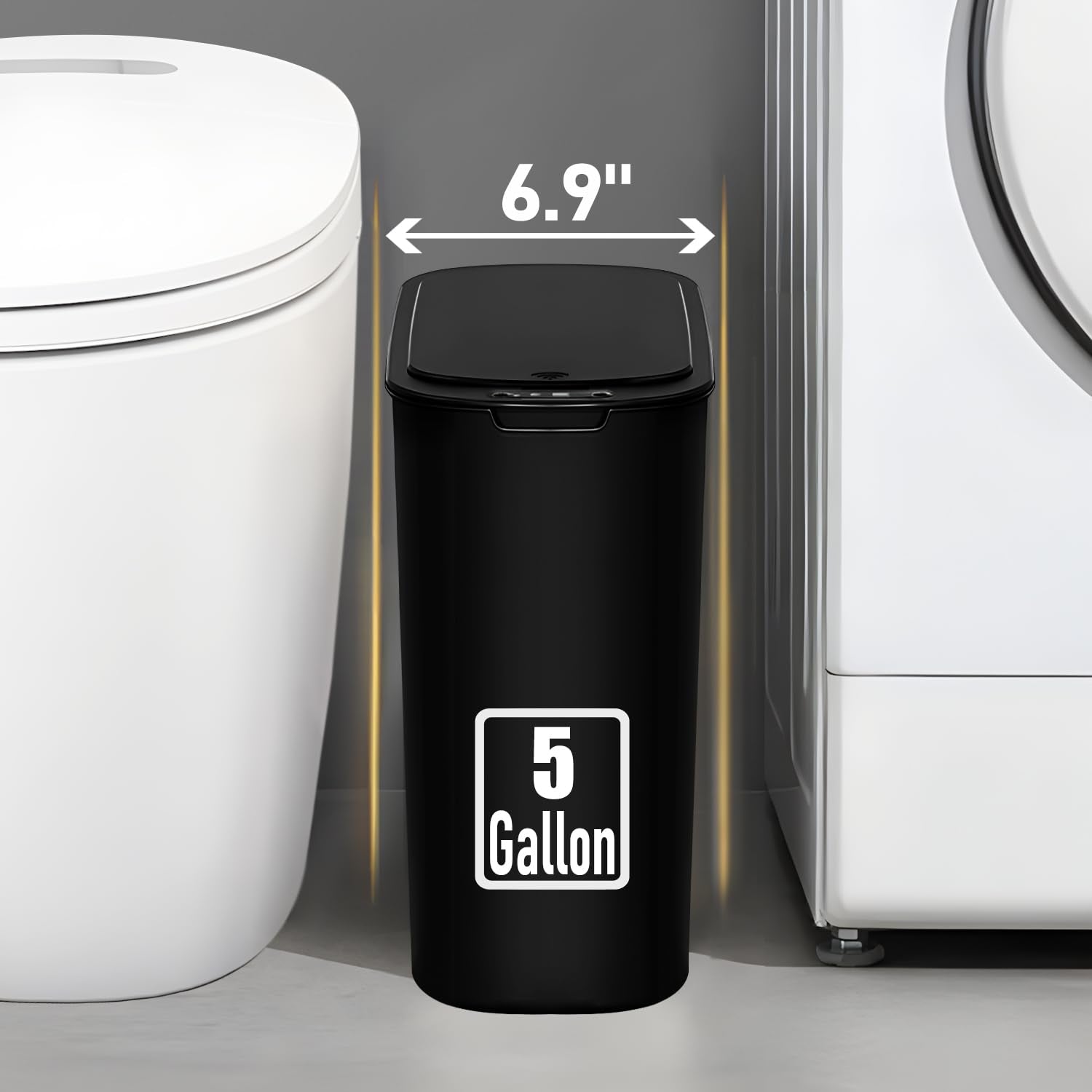 TIPGO 5 Gallon Motion Senor Bathroom Trash Can with Lid, Automatic Garbage Can Touchless, Smart Plastic Waste Basket for Narrow Spaces, Bathroom, Office, Bedroom, Living Room (Black)