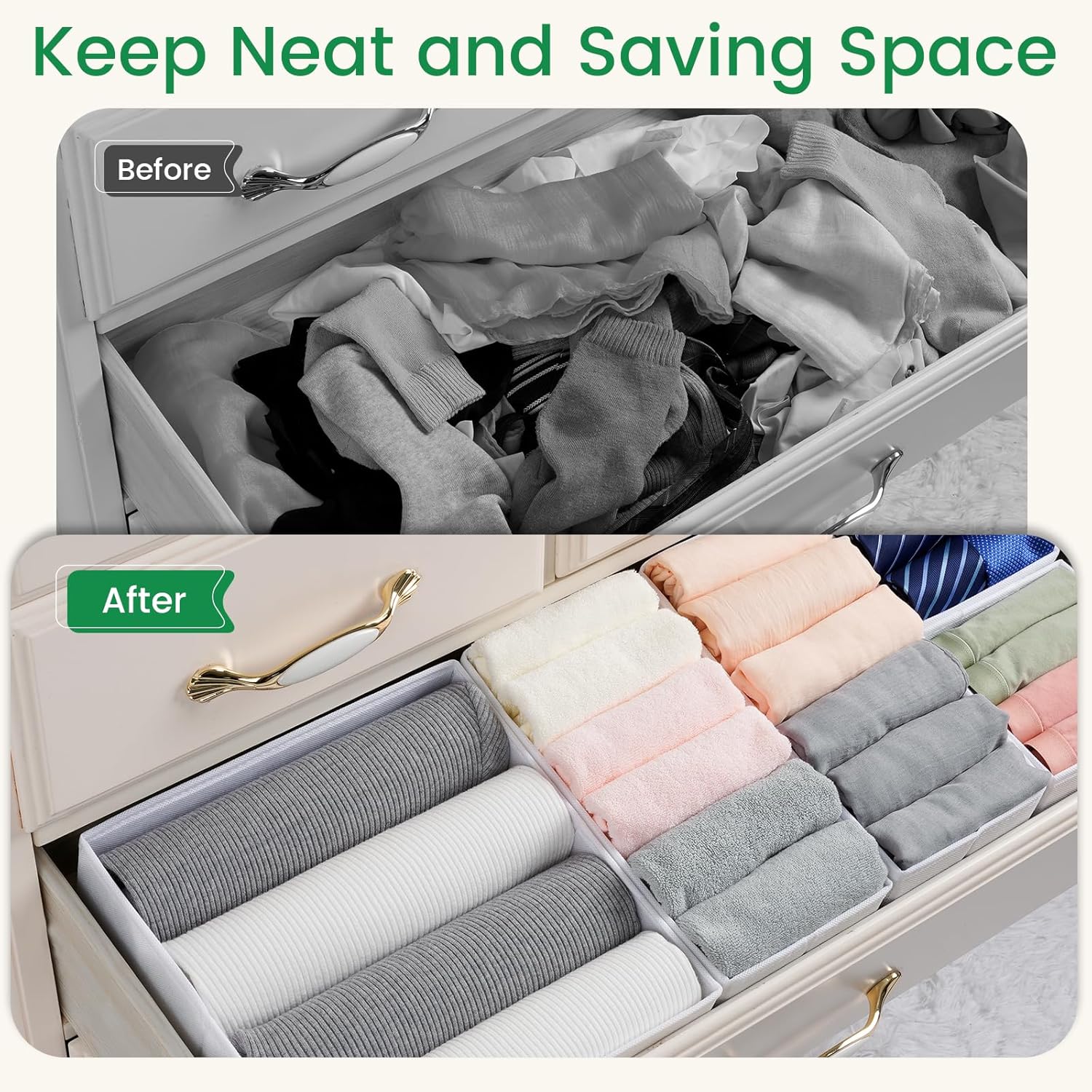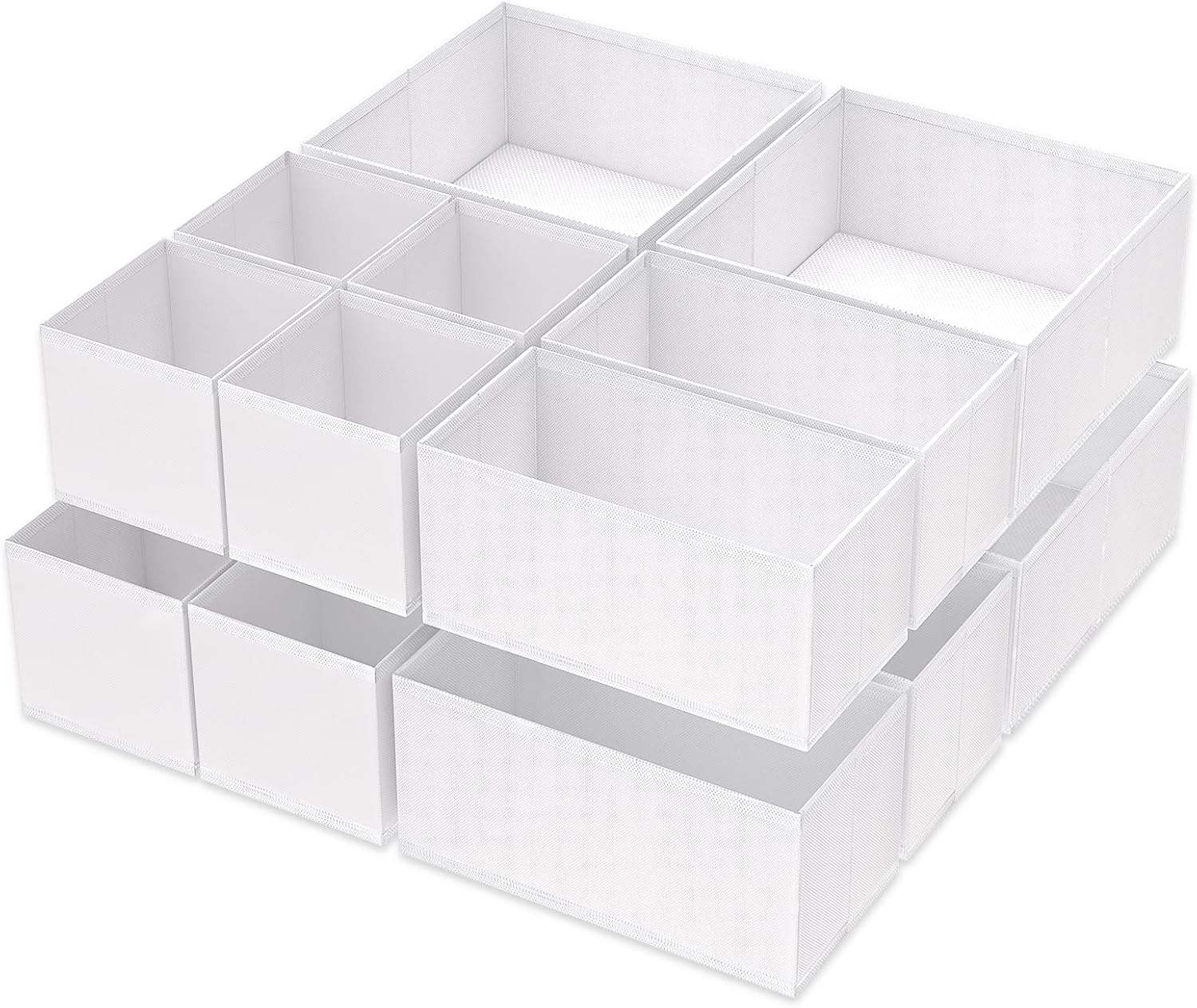 - ăDrawer Organizer SetăOur 16-pack dresser drawer organizer comes in different sizes of boxes to match various sizes of drawers. You can sort underwear, bras, socks, ties, scarves, shirts, t-shirts, lingerie, accessories and more. The drawer organizer box can easily organize items and give all items their own individual space, making life neater and saving more space.