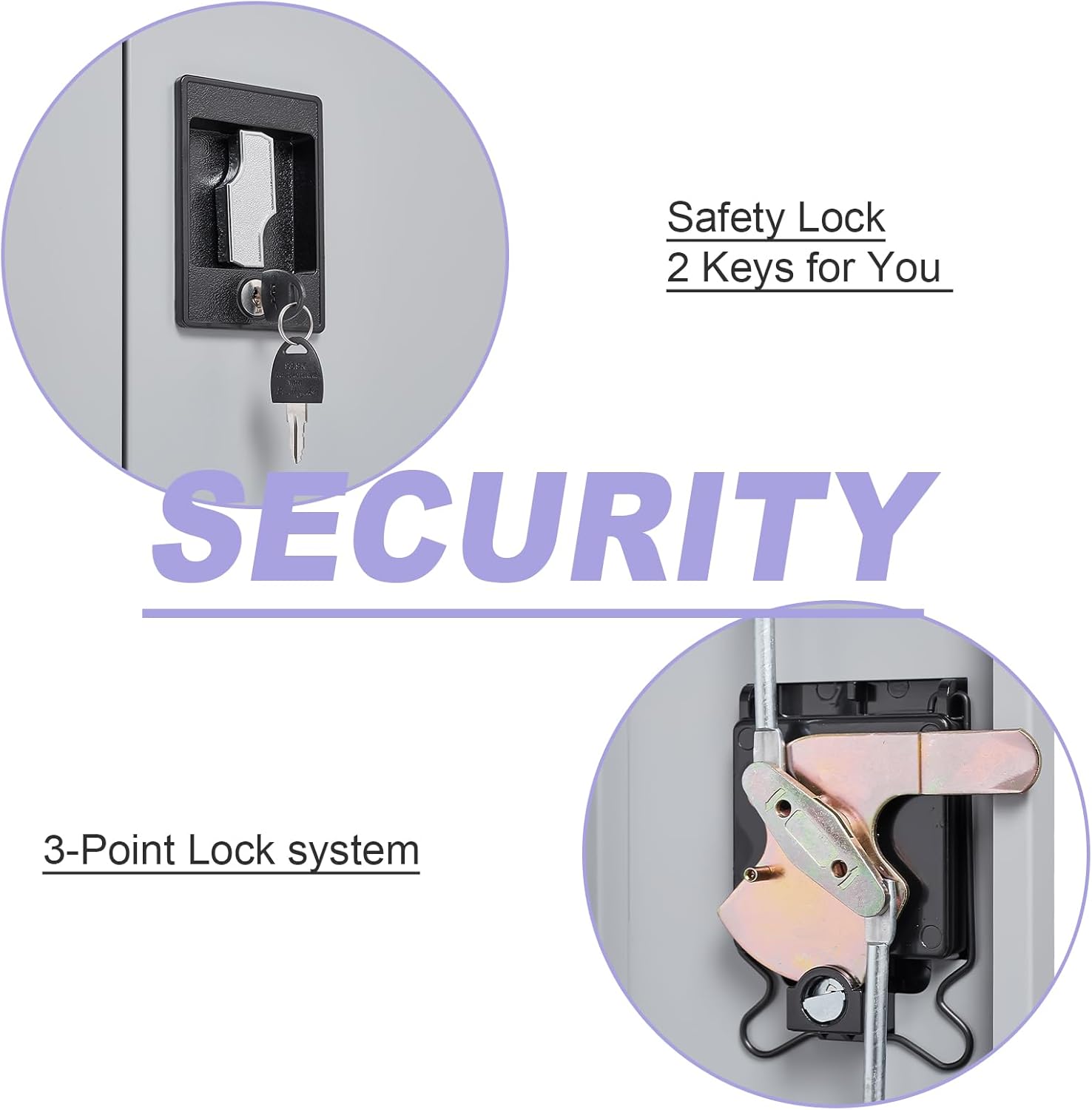 - [Key & 3-point lock system]:Our tool cabinets on wheels with locking doors and 2 keys, make your item safe and keeps them away from dust. The 3-point lock system provide extra security to double up on stored items and help prevent unauthorized access, which allowing users to store sensitive or important documents.