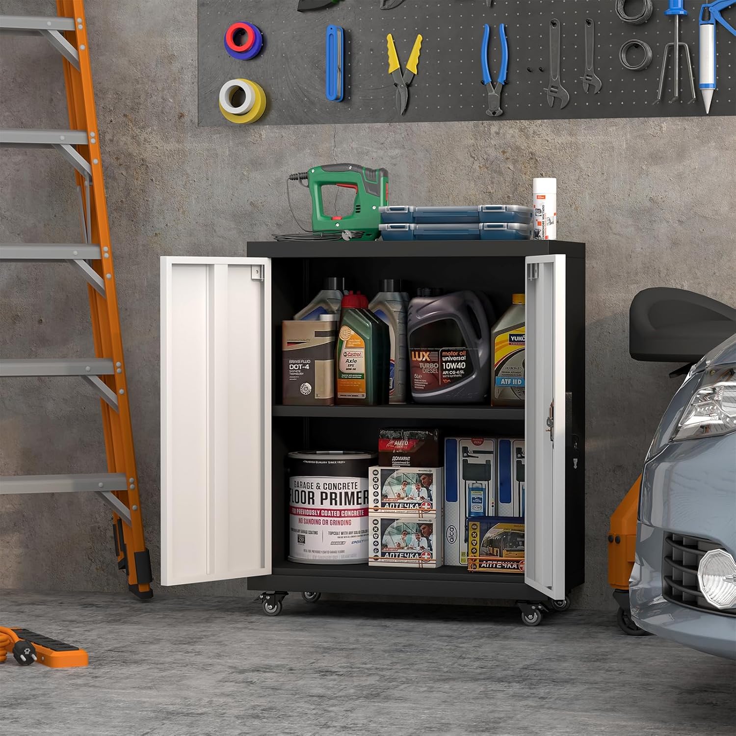 - [Customized your needs]: This mobile garage cabinets with 1 adjustable shelf, allowing users to freely adjust the size of the internal space according to needs and flexibly store items of different sizes. Documents, files, tools, box and anything you want.