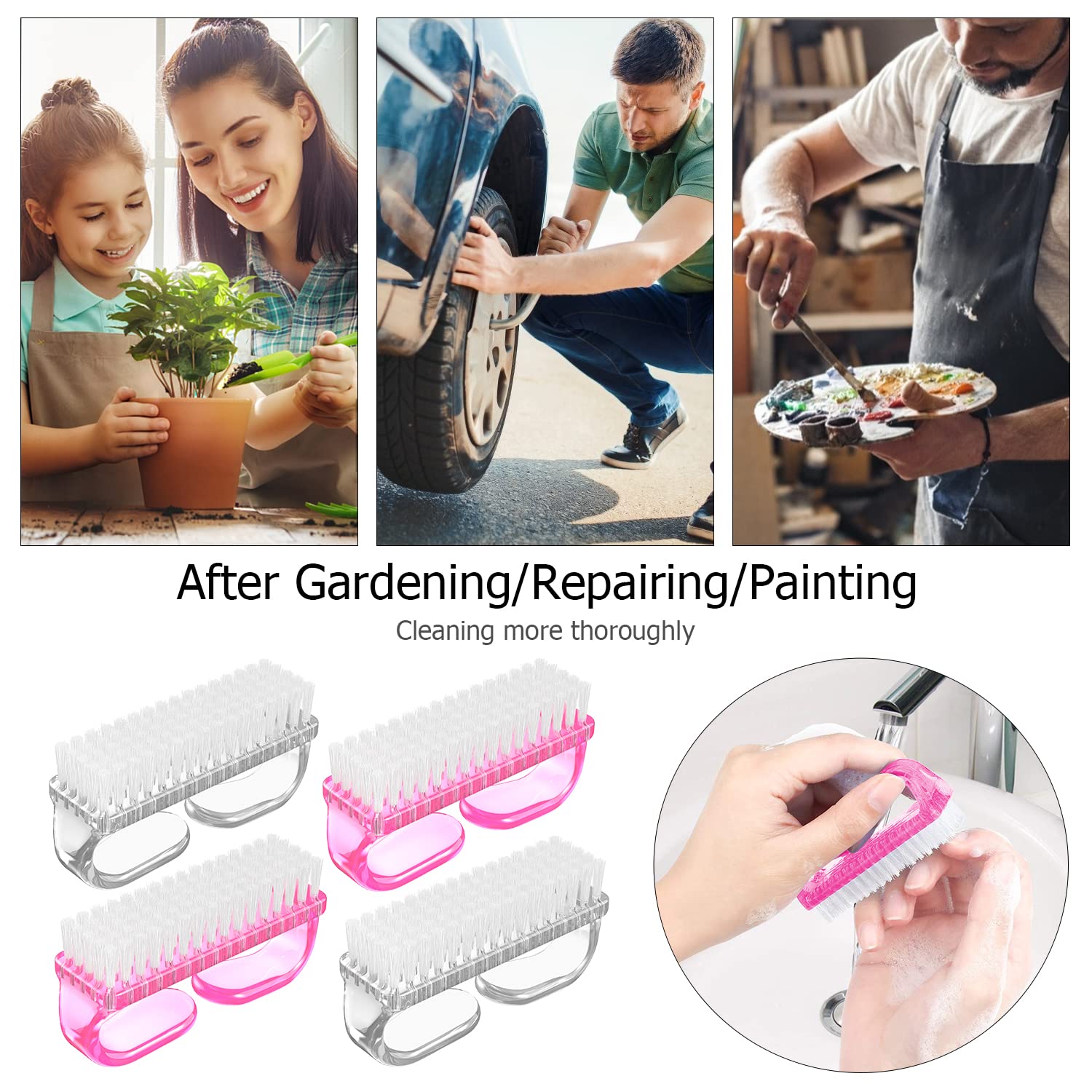 - 【High Quality Material】: These nail brushes' handles are made of sturdy plastic which are not easy to bent. The bristles are made of flexible plastic, not too hard and not too soft which won't scratch your skin. Sturdy for long-term to use.