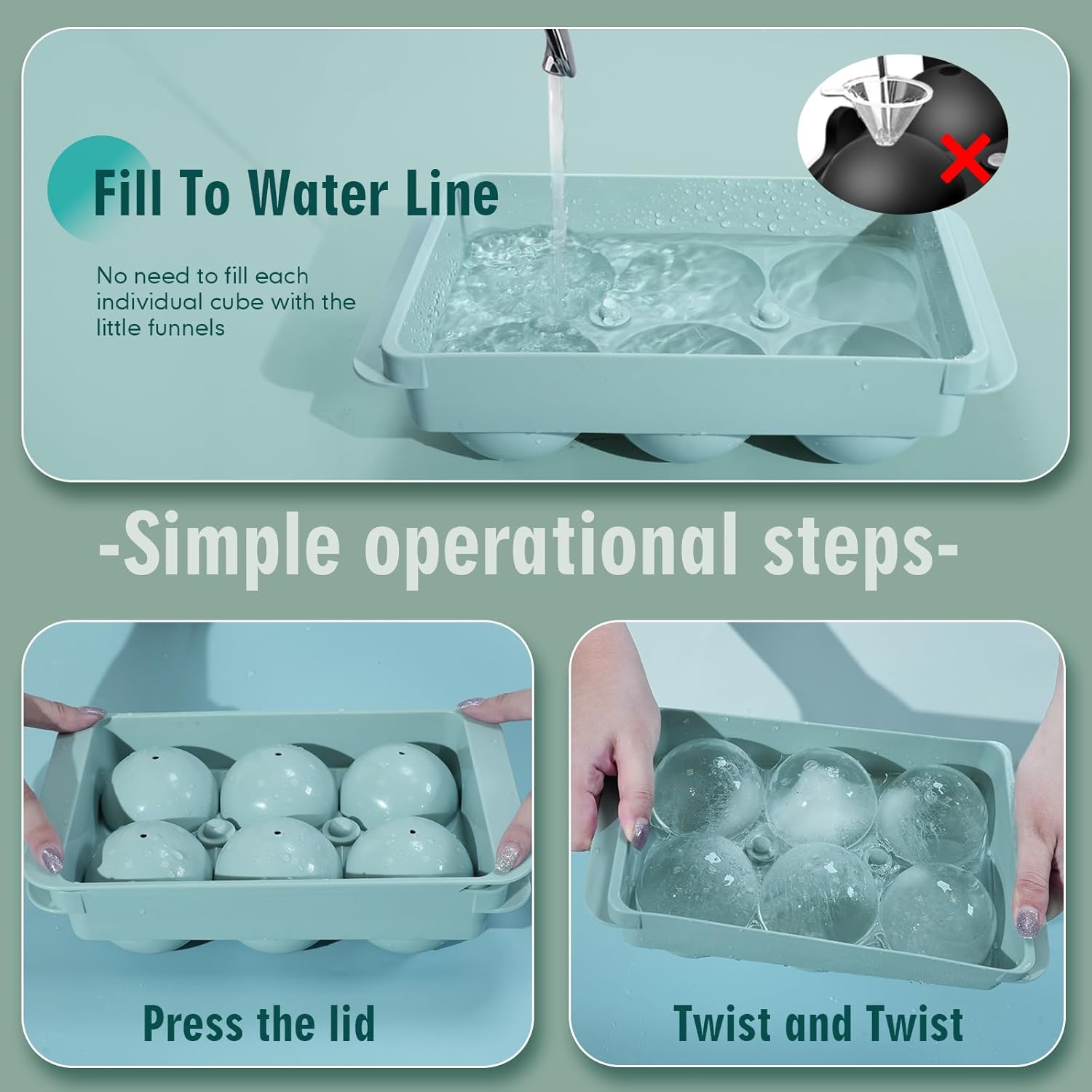 WIBIMEN Large Ice Cube Molds, Big Round Whiskey Ice Cube Trays for Freezer, Easy to Fill & Release, Whiskey Bourbon Cocktail(2.5In*6 Balls- Blue/2 Pack)