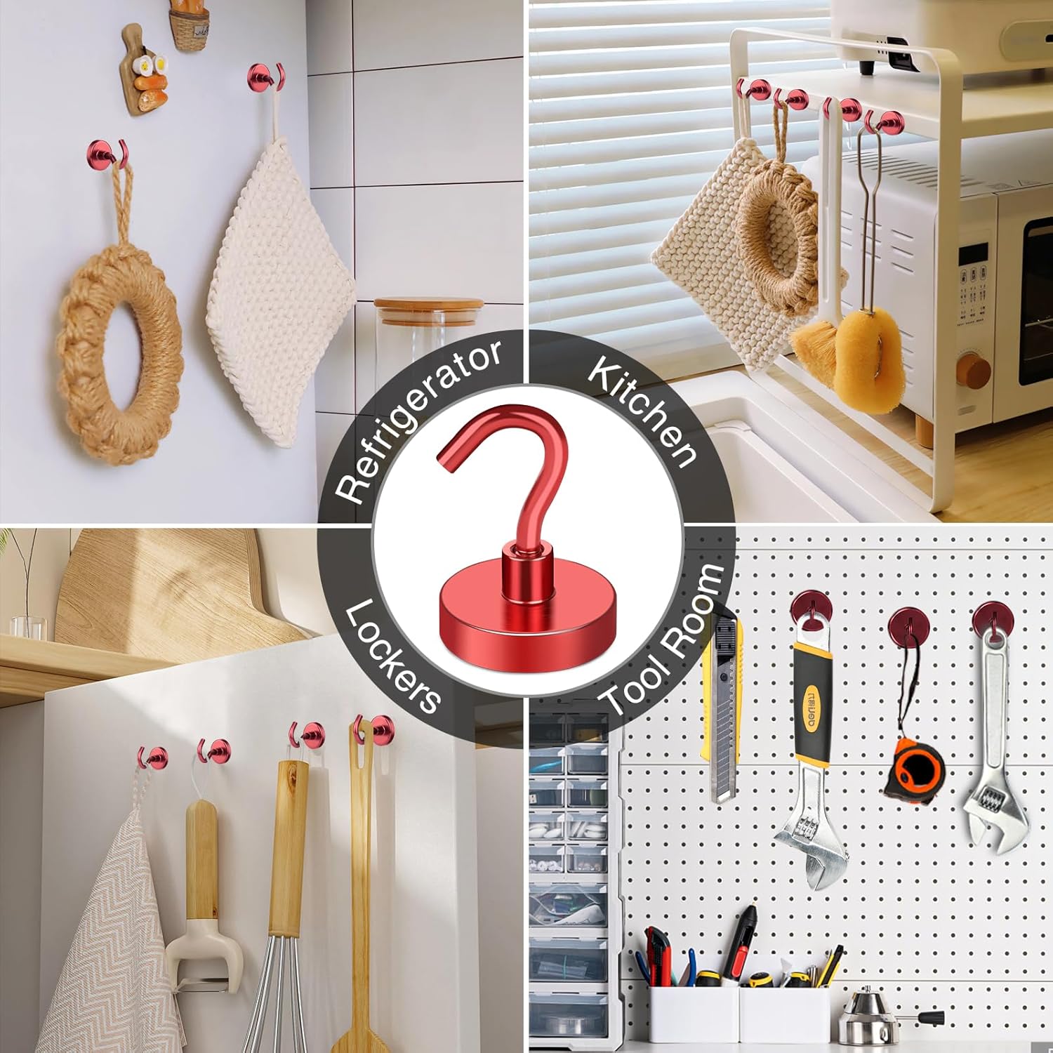 - 【Useful Magnetic Hangers】- Strong magnetic hooks are incredibly useful and versatile! They can be easily removed and fit in anywhere, making them perfect for hanging a wide range of items such as Christmas gifts, kitchen utensils, coats, keys, clothes, barbecue grills, garlands, gardening tools, and more. You can use them in your refrigerator, kitchen, or even outside for various applications. With our magnetic hangers, you have a convenient and flexible solution for hanging all sorts of items
