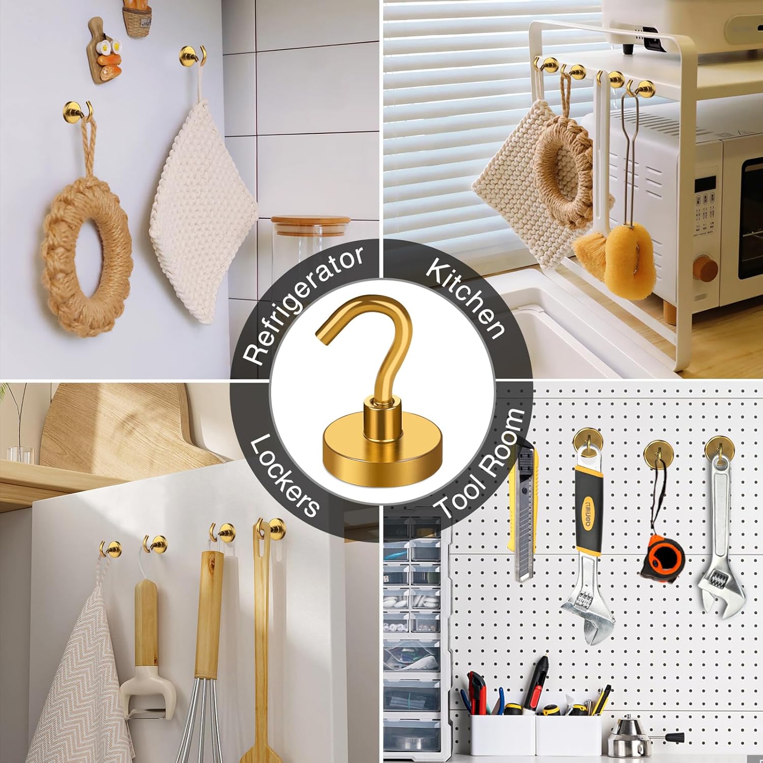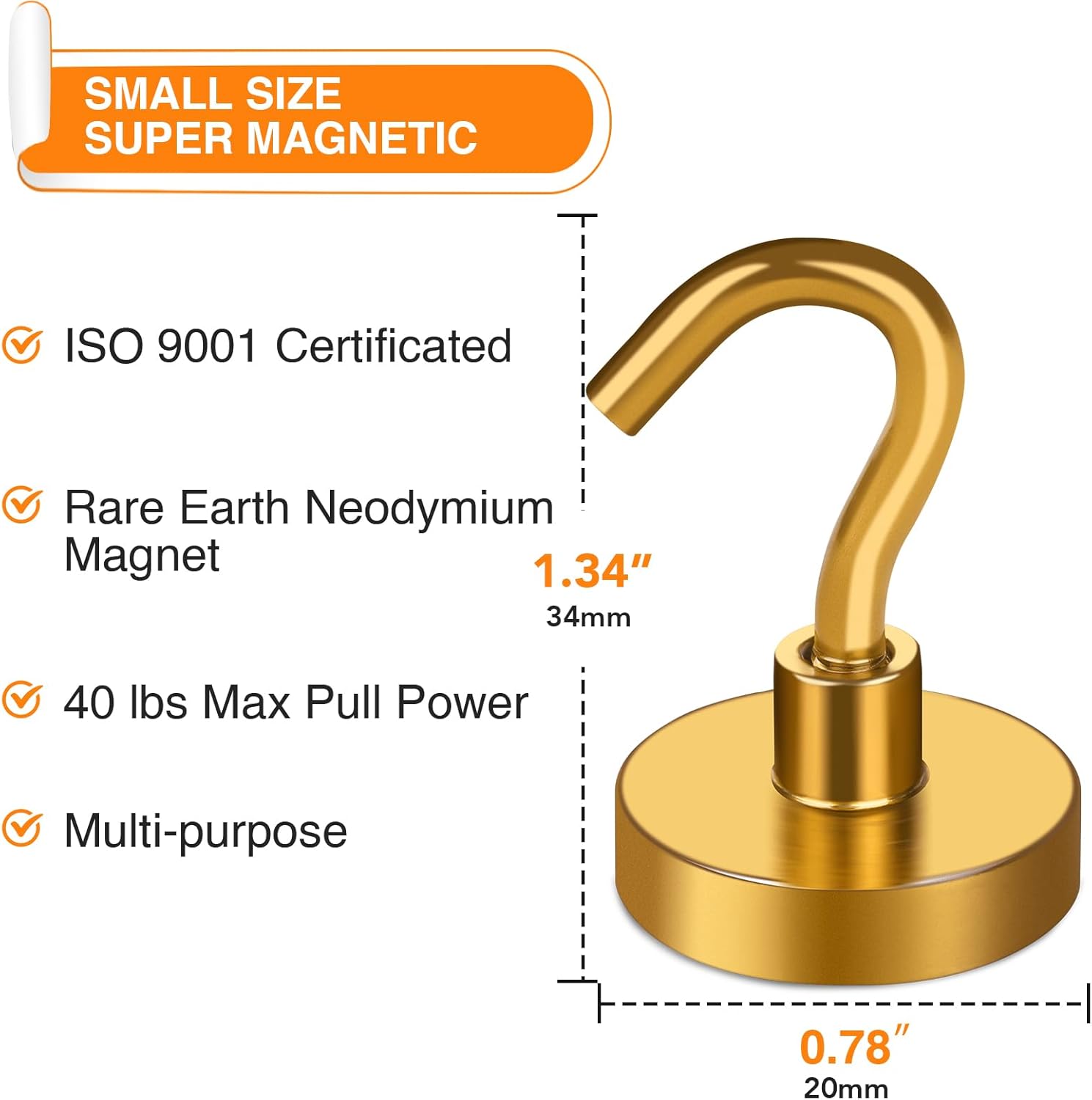 MIKEDE Magnetic Hooks Heavy Duty, 40 Lbs Magnet with Hooks for Cruise Cabins, Strong Magnets Neodymium for Hanging, Magnetic Wall Hooks for Refrigerator, Locker, Workplace(Yellow, 10 Pack)