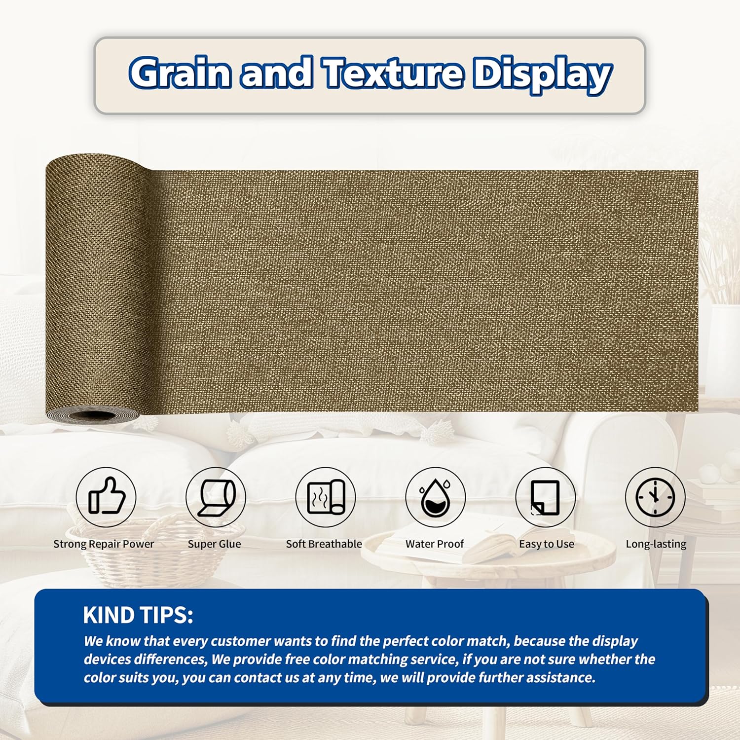 - Easy Application: Clean the damaged area, cut to the appropriate size, peel off the backing paper, and stick it to the damaged area. It only takes a few seconds to complete, and the repair effect is natural and tidy. Suitable for repairing linen products such as sofas, curtains, cushions, furniture, interior decorative fabrics, etc.