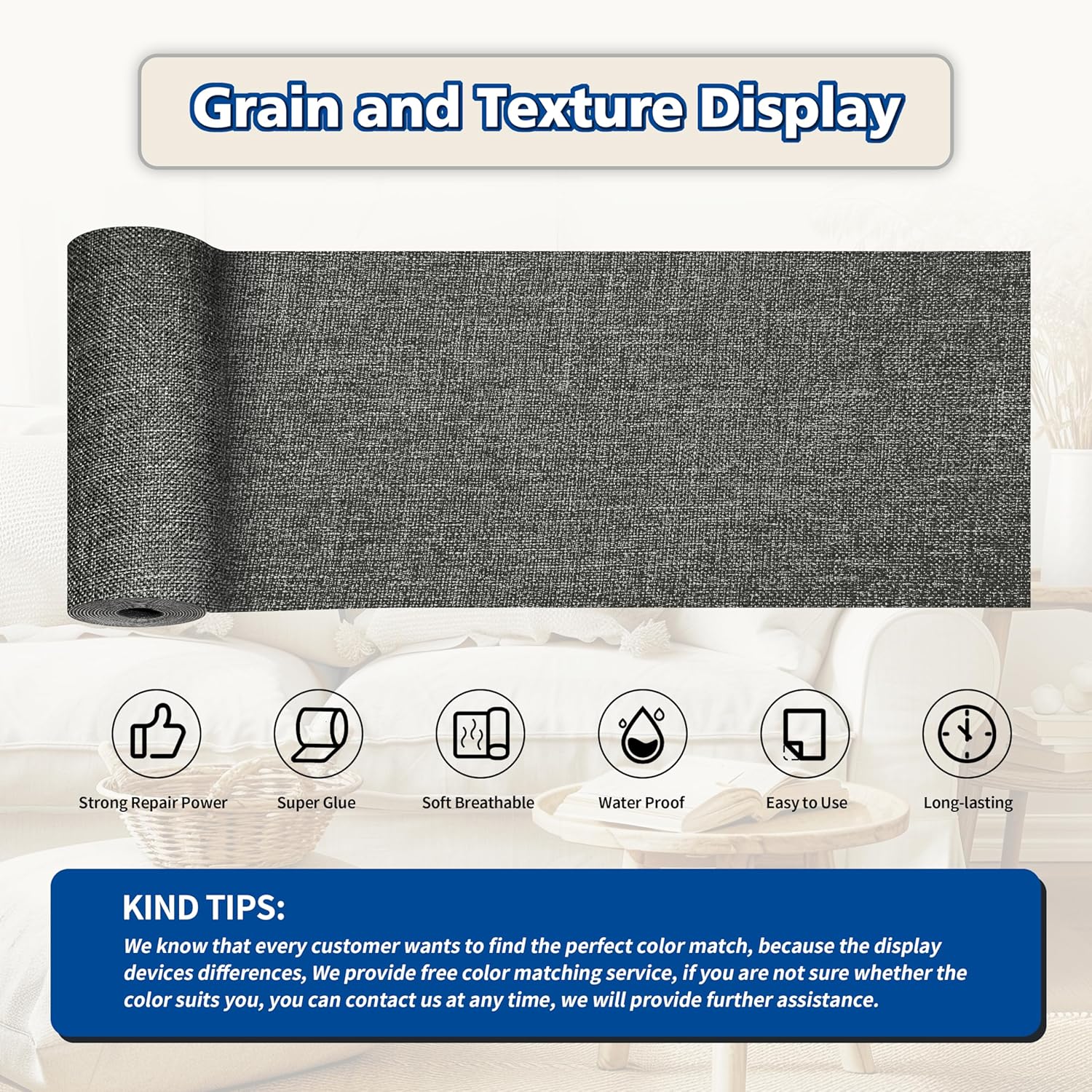 - Easy Application: Clean the damaged area, cut to the appropriate size, peel off the backing paper, and stick it to the damaged area. It only takes a few seconds to complete, and the repair effect is natural and tidy. Suitable for repairing linen products such as sofas, curtains, cushions, furniture, interior decorative fabrics, etc.