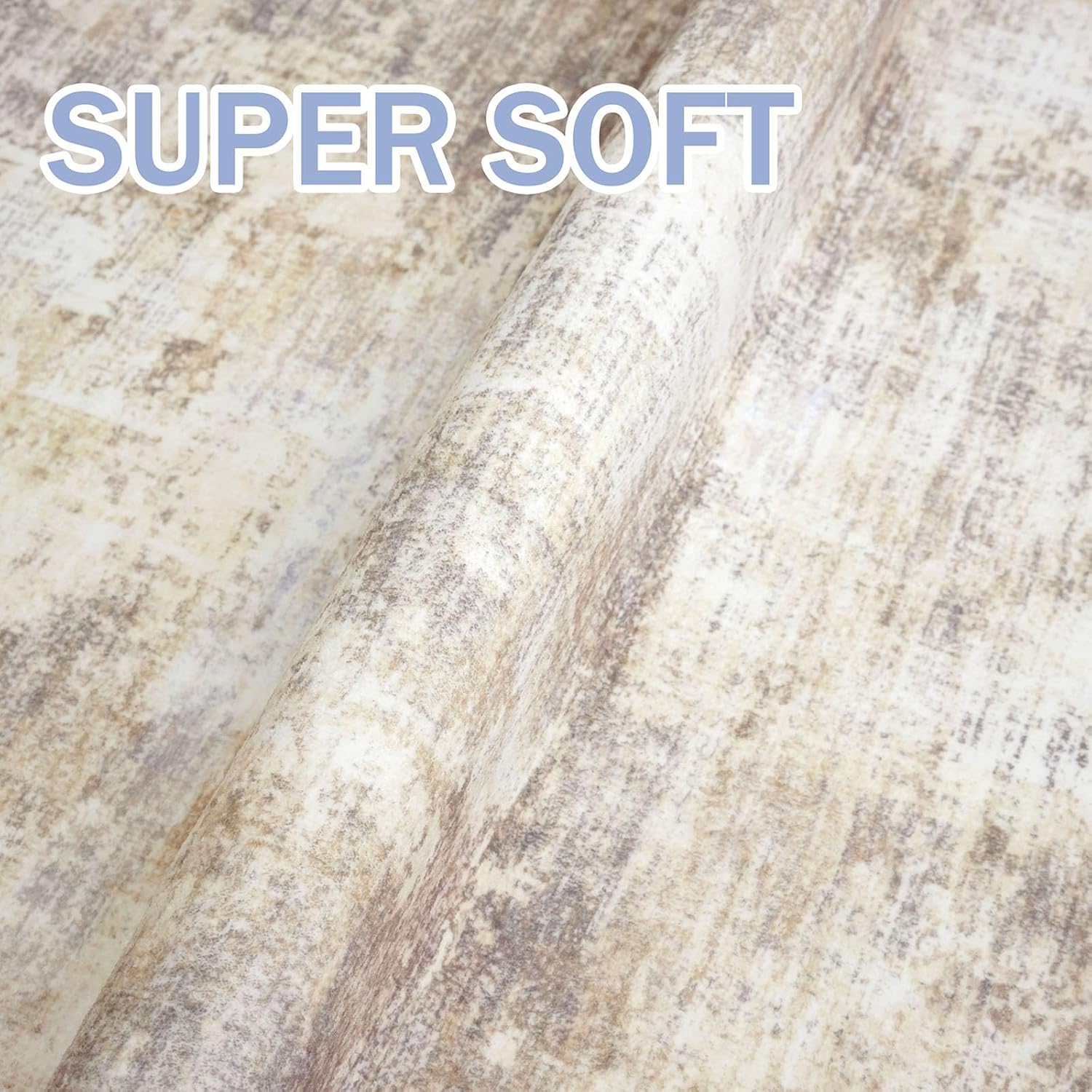 IOHOUZE Abstract Area Rugs 6x9 Ft Washable Rugs for Living Room, Non Slip Dining Room Rug Printed Faux Wool Rugs for Bedroom, Floor Carpet for Office Nursery Playroom, Beige Brown
