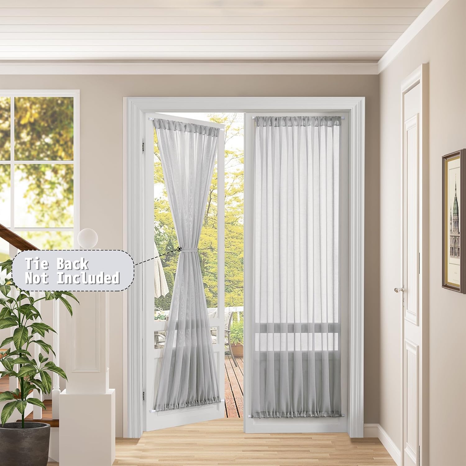 Tollpiz Sheer Door Curtain Closet Linen Textured Curtains Sheer Doorway Light Filtering Voile Patio Glass Door Rod Pocket Curtain French Door, 54 x 72 inches Long, Silver Grey, Set of 1 Panel