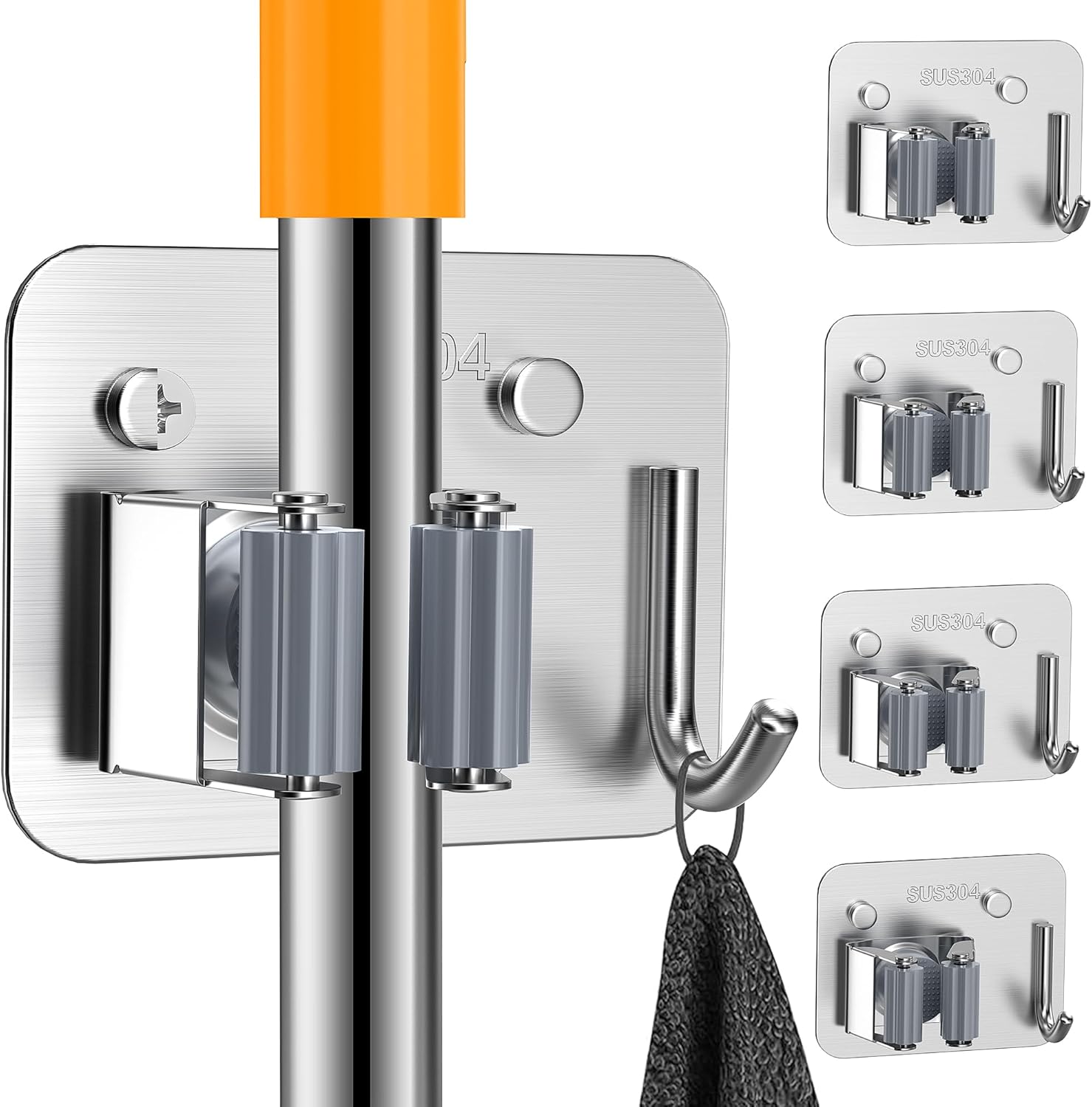 - Premium Durability: The XCIXCI mop holder wall mount is made of high-grade 304 stainless steel. It is not only sturdy and durable but also can resist corrosion, rust, and wear from daily use to maintain its long-term beauty and solidity.