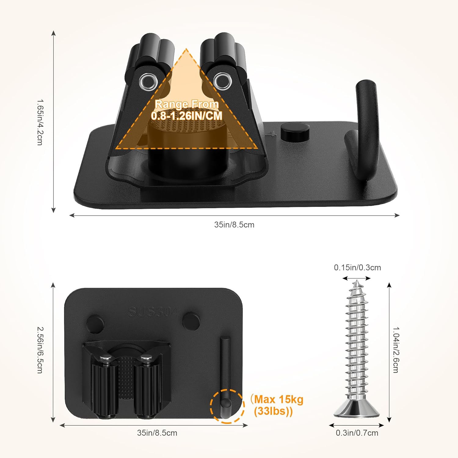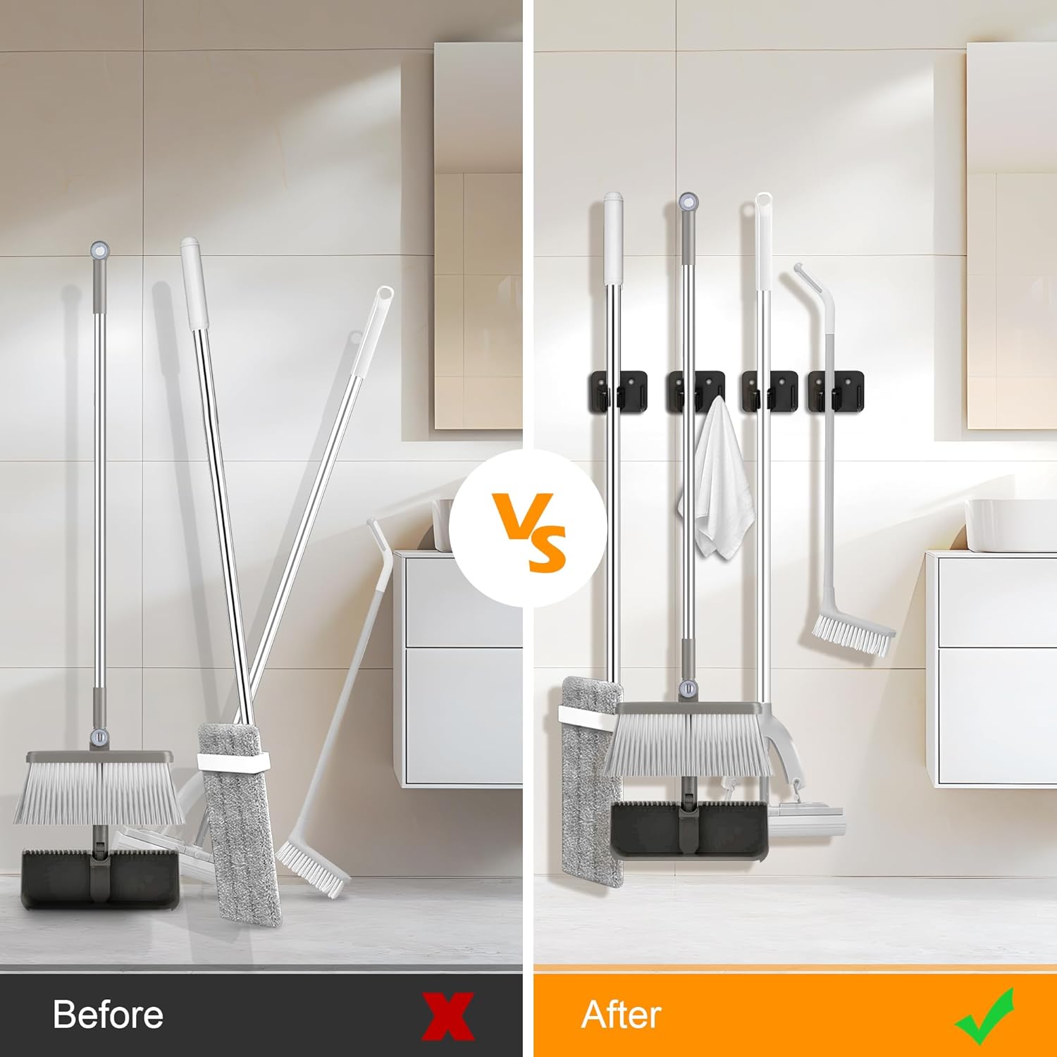 - Economical 4-Pack: This value set includes 4 mop broom holder wall mounted and 10 screws. Spread them across multiple rooms or create a dedicated cleaning station. The elegant black finish complements any dΓ©cor, offering both functionality and style.