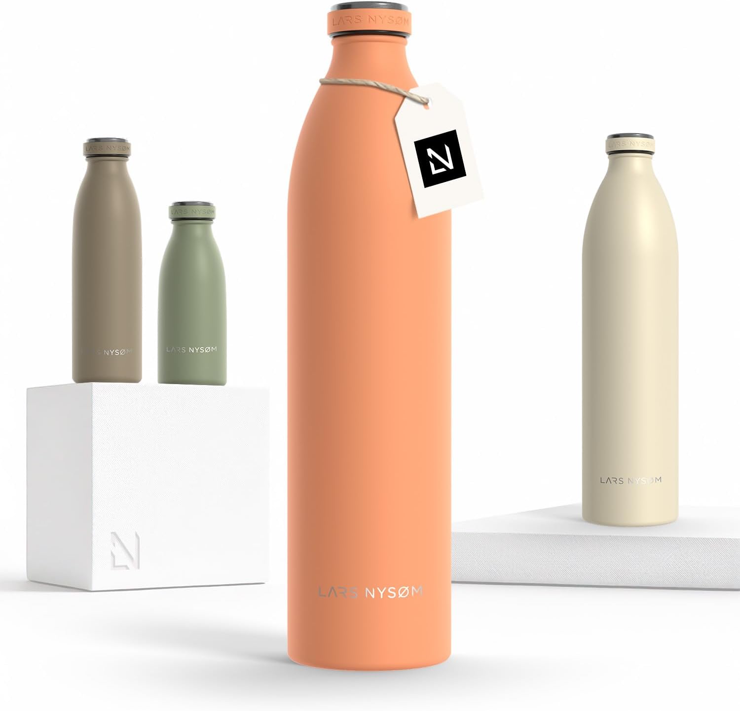 LARS NYSØM Stainless Steel Insulated XL Water Bottle 12oz 17oz 25oz 34oz 51oz | Insulated Thermo Flask for Hot and Cold Beverages | Leakproof Drinking Bottle (Pumpkin Orange, 50.7 oz)