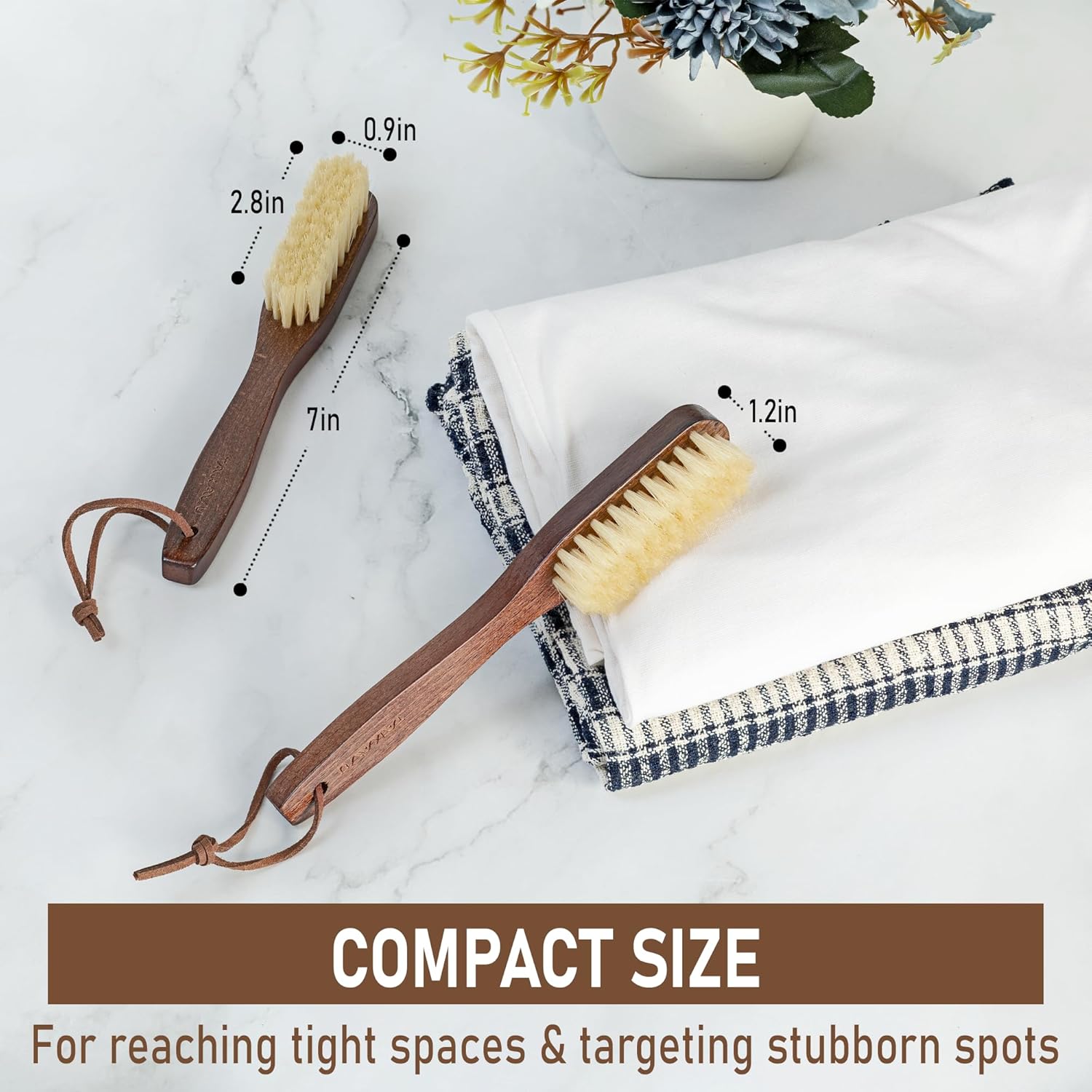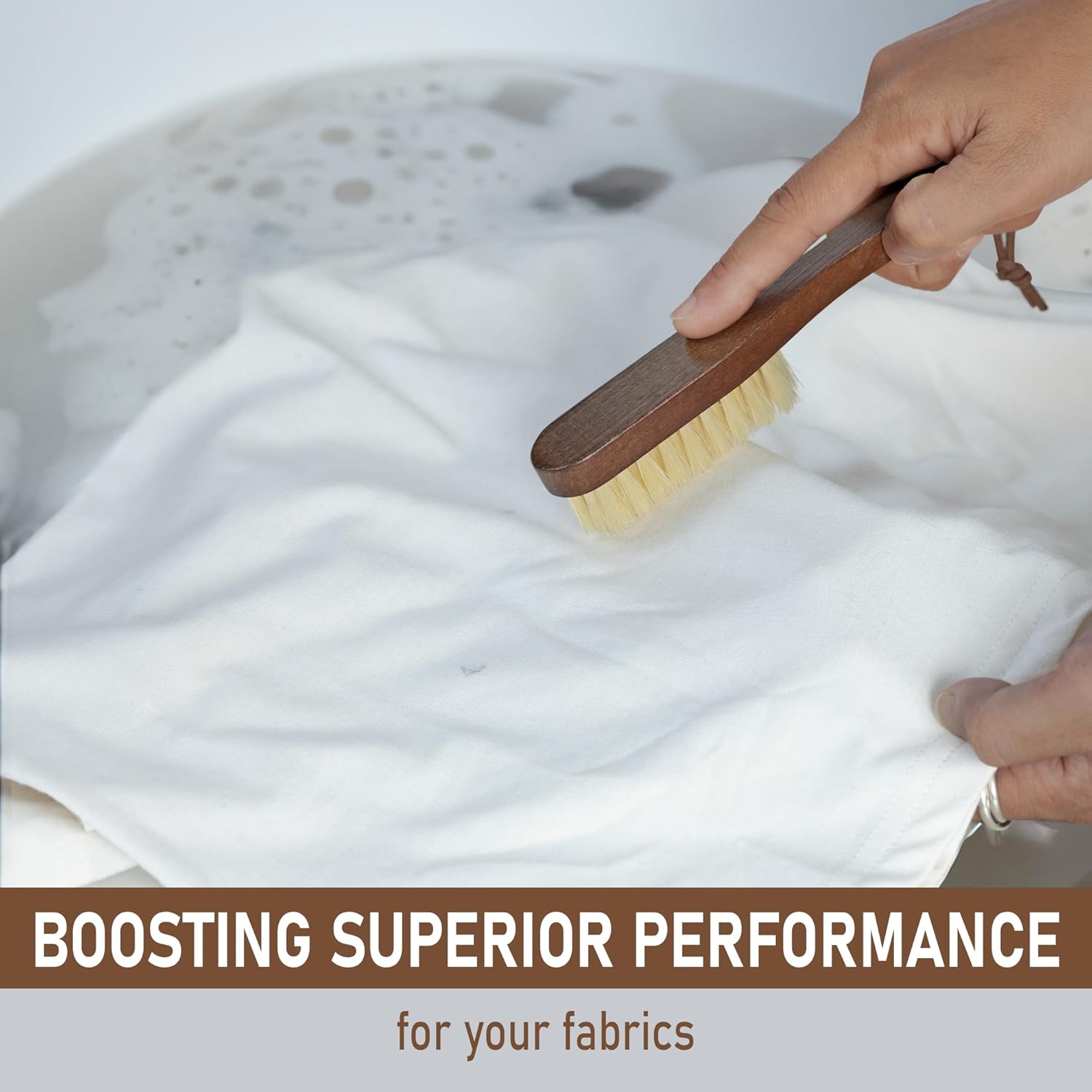 • Natural white boar bristles: Ideal for light-colored fabrics! These firm-yet-gentle natural boar bristles provide effective scrubbing power against grime but are less abrasive than harsh synthetics, minimizing damage to weaves like cotton, linen, denim, and blends