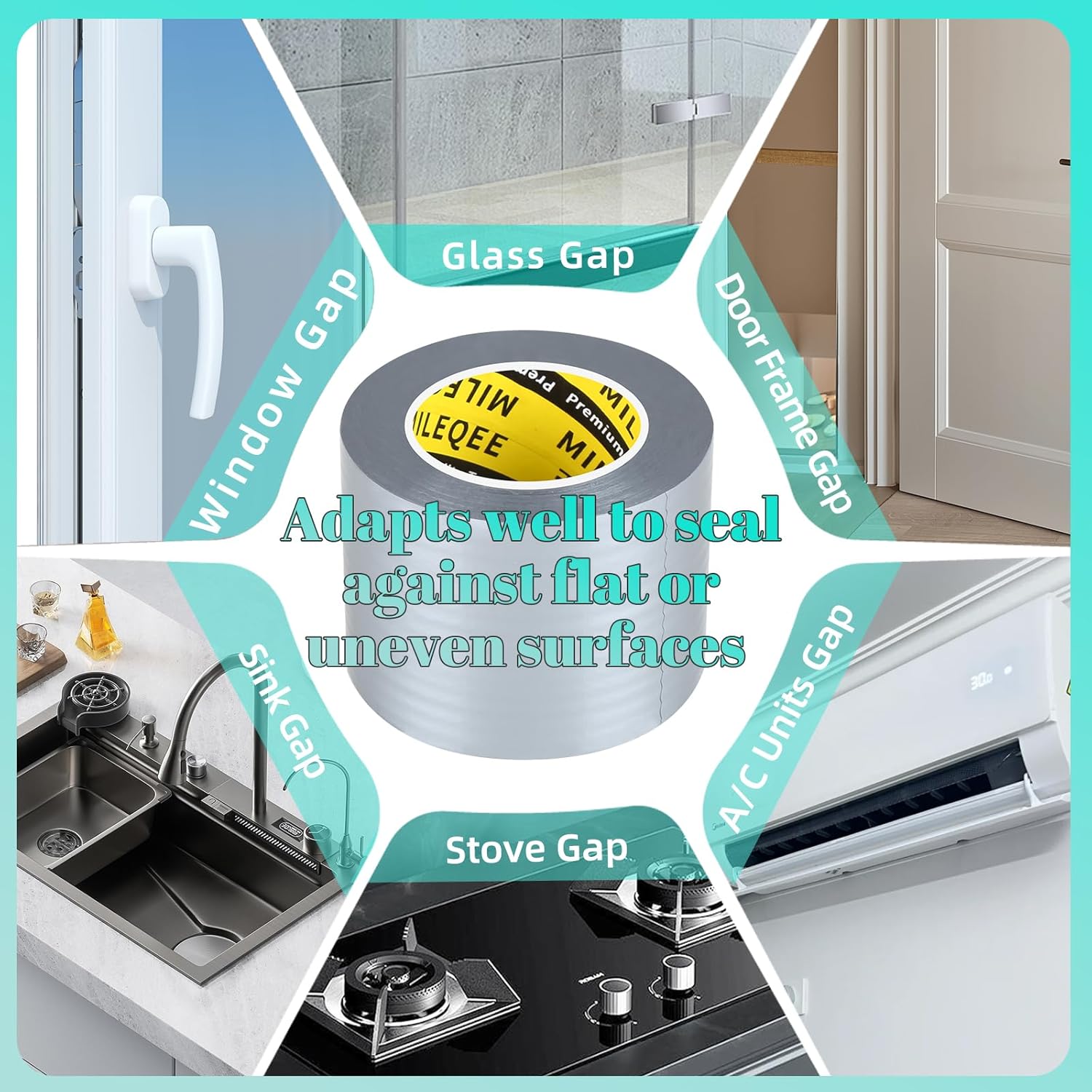 Window Weather Stripping Door Seal Tape Silver, 2in x 66FT, Automotive Weatherstrip Adhesive Seal Strip for Car Auto Trunk, Weatherproof Gap Sealing Sealer Draft Blocker, Waterproof