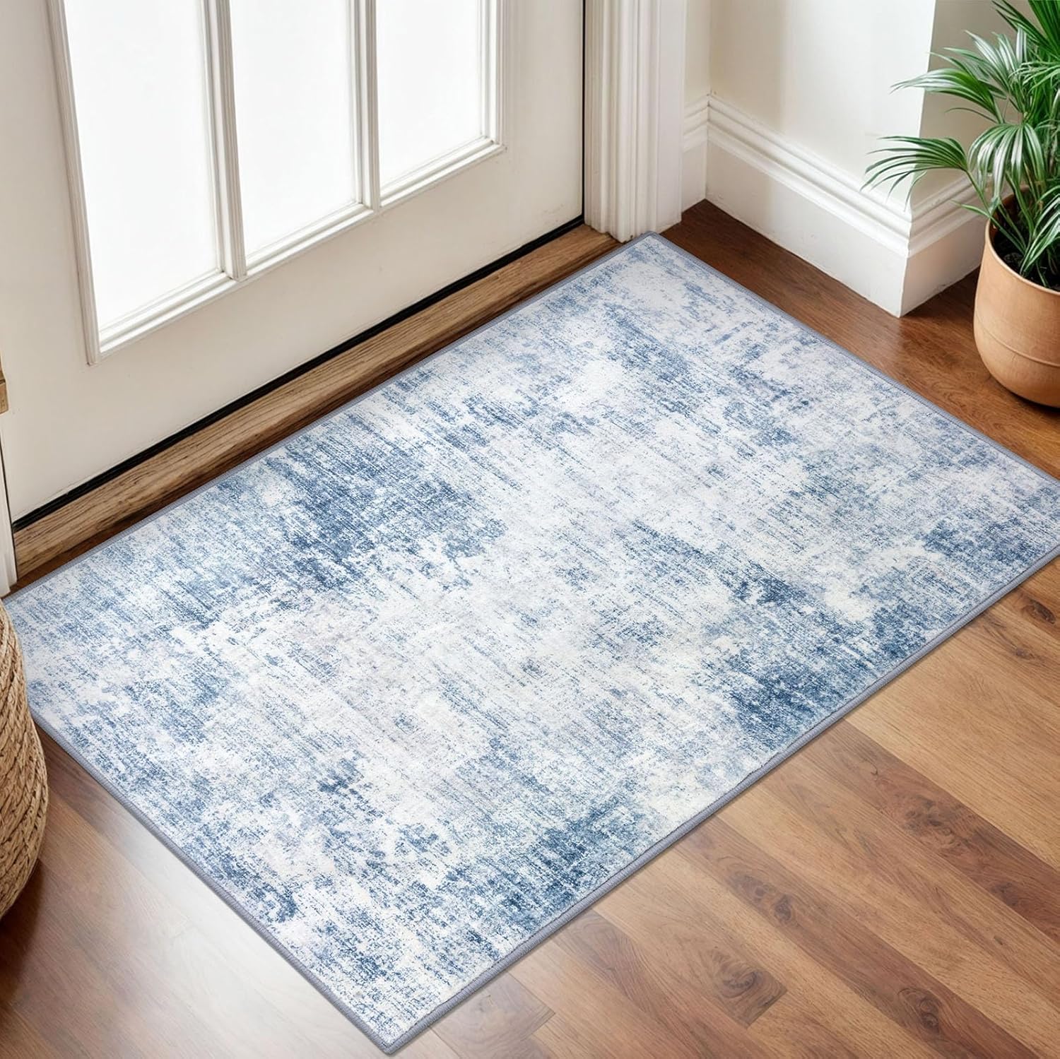 IOHOUZE Small Abstract Area Rug 2x3 Ft Entryway Rugs Washable Door Mat Indoor Entrance, Rubber Backed Throw Rugs, Printed Non Slip Floor Carpet for Foyer Front Door Sink, Light Blue White