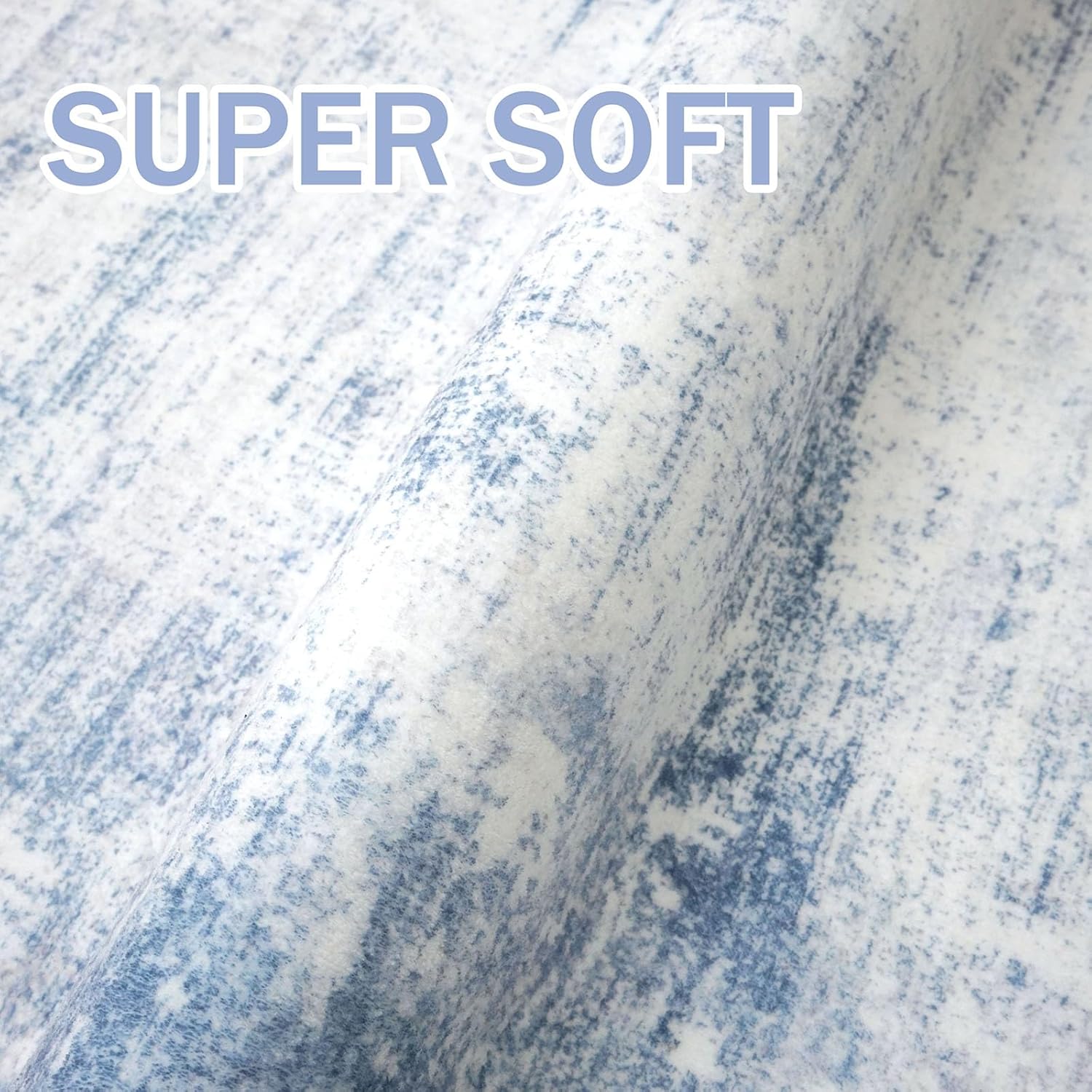 IOHOUZE Abstract Area Rugs 9x12 Ft Washable Large Rugs for Living Room, Non Slip Dining Room Rug, Printed Faux Wool Rugs for Bedroom, Floor Carpet for Office Nursery Playroom, Light Blue White