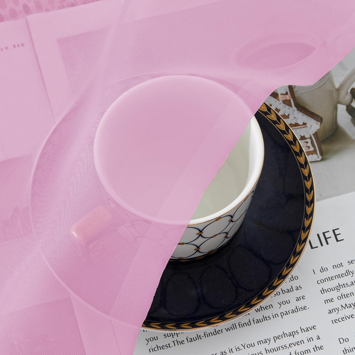Chyhomenyc Pink Sheer Curtains 30 inch Length 2 Panels, Light Filtering Voile Rod Pocket Short Window Curtians for Bathroom Living Room Farmhouse Small Windows, 42Wx30L inches