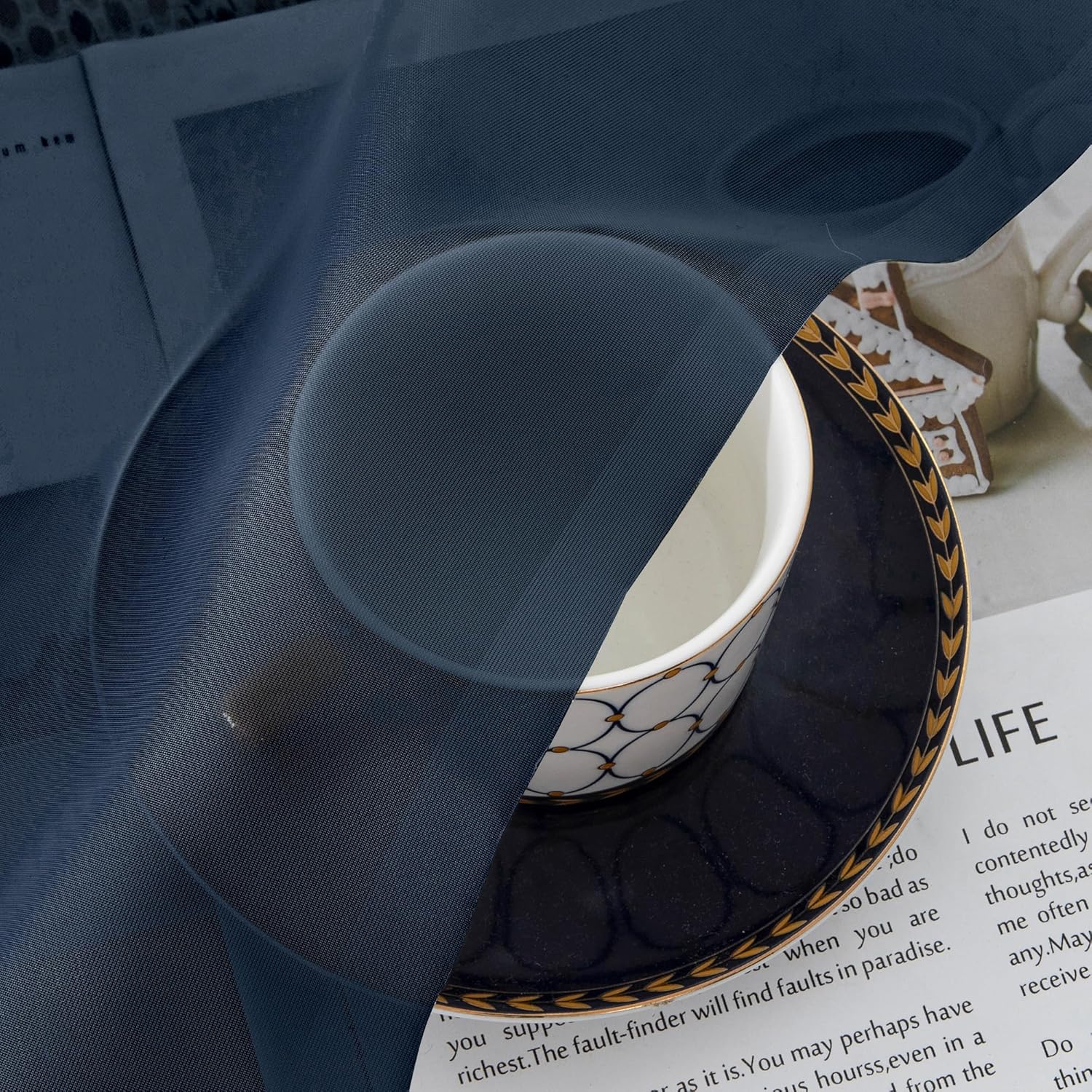 Chyhomenyc Navy Blue Sheer Curtains 30 inch Length 2 Panels, Light Filtering Voile Rod Pocket Short Window Curtians for Bathroom Living Room Farmhouse Small Windows, 42Wx30L inches
