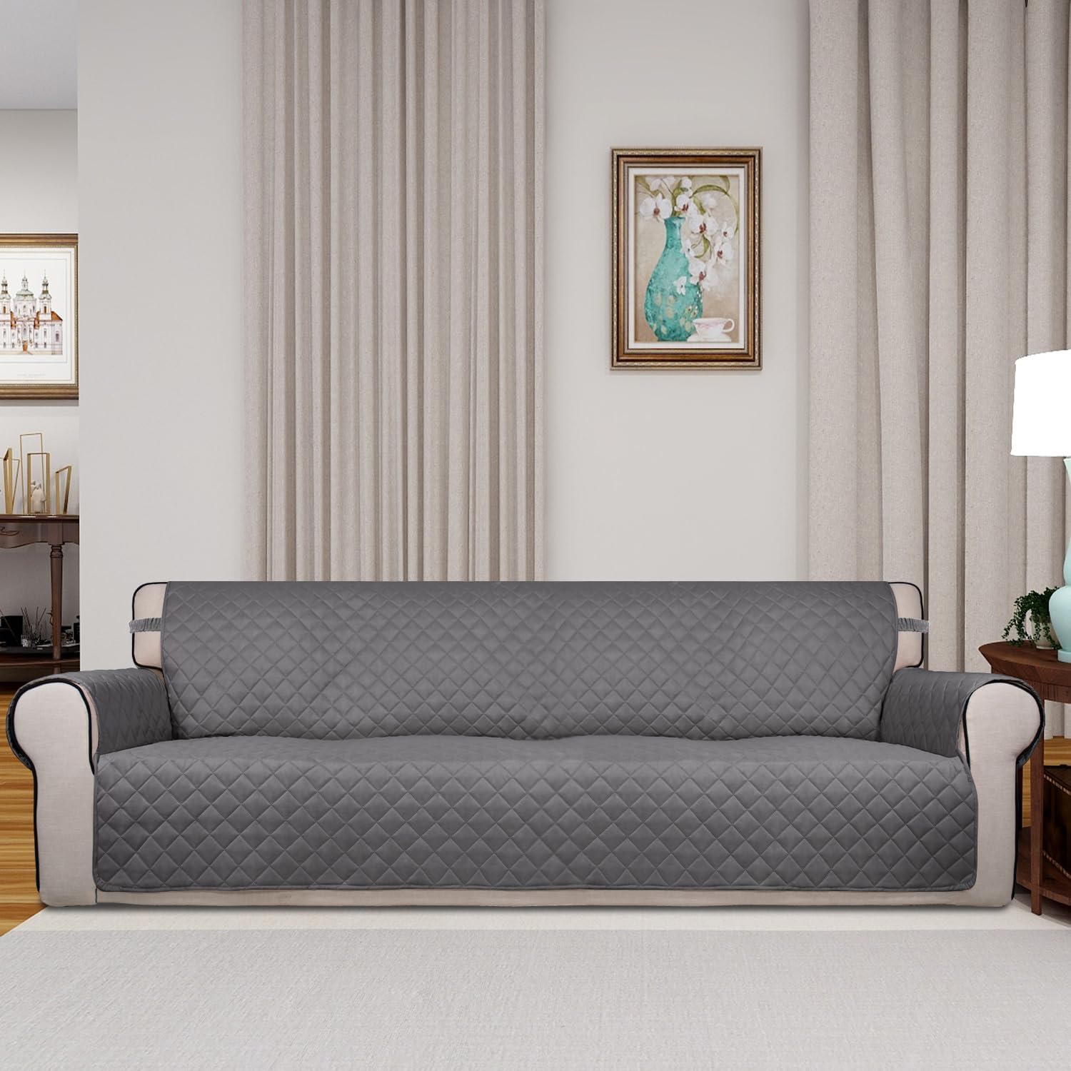 - THE REVERSIBLE SOFA COVER THAT STAYS IN PLACE: Our sofa couch cover for dogs and pets features a reversible design (dual color). Our non-slip sofa furniture slip covers also feature non slip foam anchors and Feature elastic straps to ensure they will stay tight with no snag, no wrinkling, shifting or slipping even after sitting or taking a nap on it.