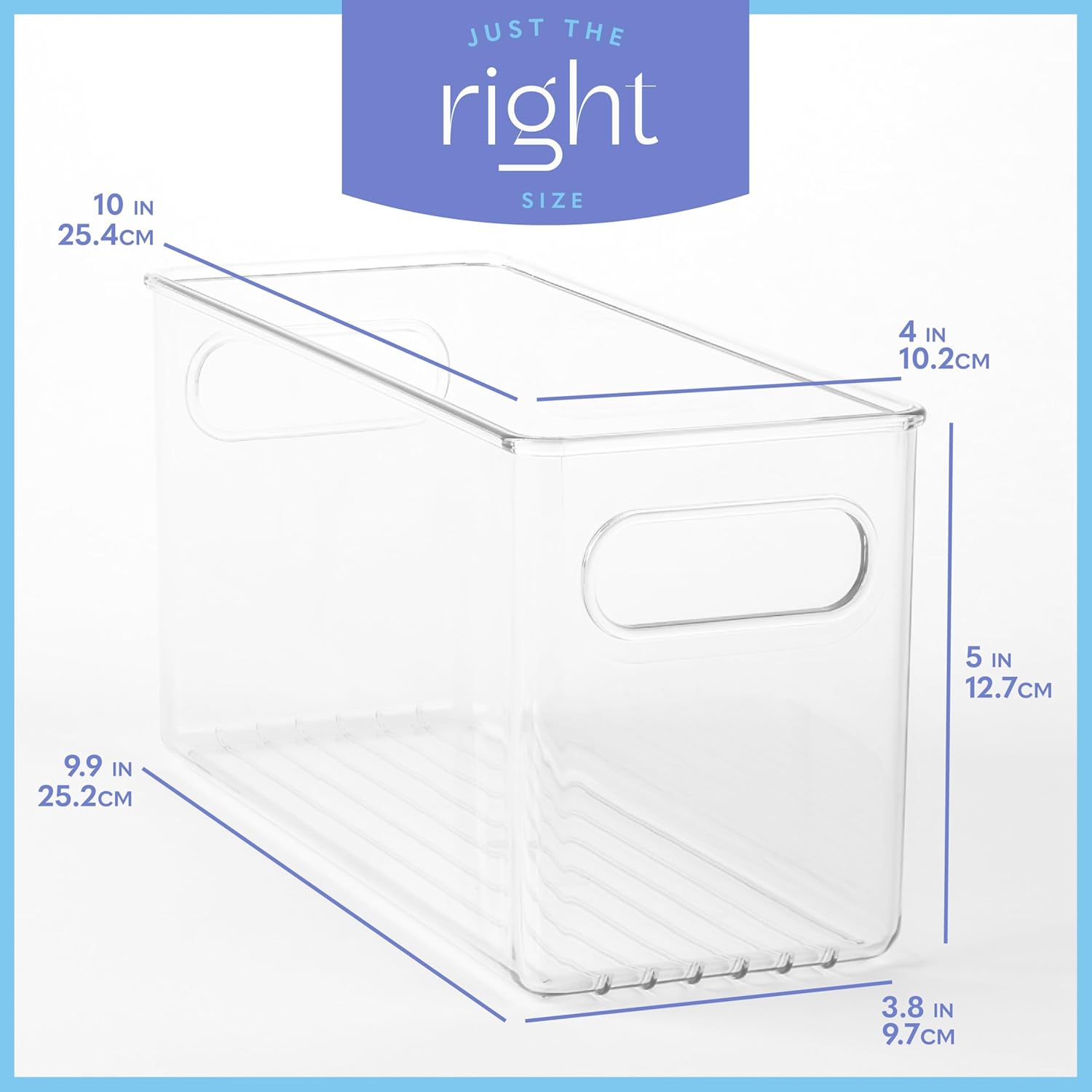 Plastic Food Storage 6 Pack Clear Container Bin with Handles for Organizing Kitchen, Pantry, Refrigerator, Freezer, Pantry, Cabinet, Closet, Bathroom. 10”x4”x5”