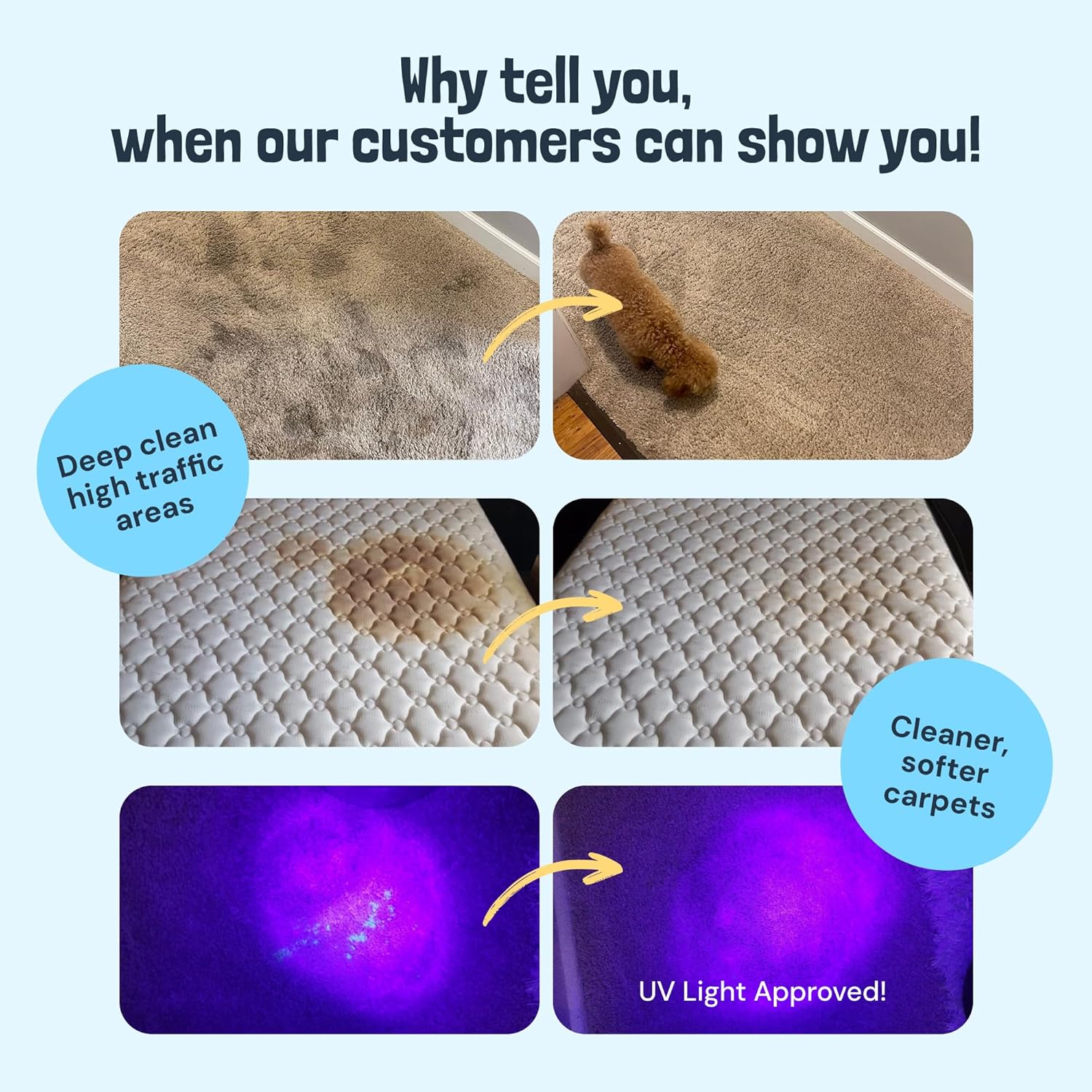 - Versatile Clean Machine: From rugs to car upholstery, this rug cleaner solution fits every cleaning need. It's perfect as a pet urine remover for carpet and works smoothly with any carpet shampoo machine, making cleaning a breeze