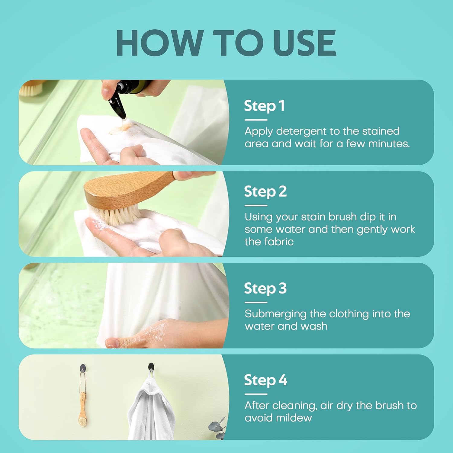 - Reduce Waste: Donβt discard garments with small stains! Our stain brush helps work detergent and stain remover deep into fabric fibers, allowing the remover to effectively lift stains. Your garments will look clean and fresh, ready to wear for years