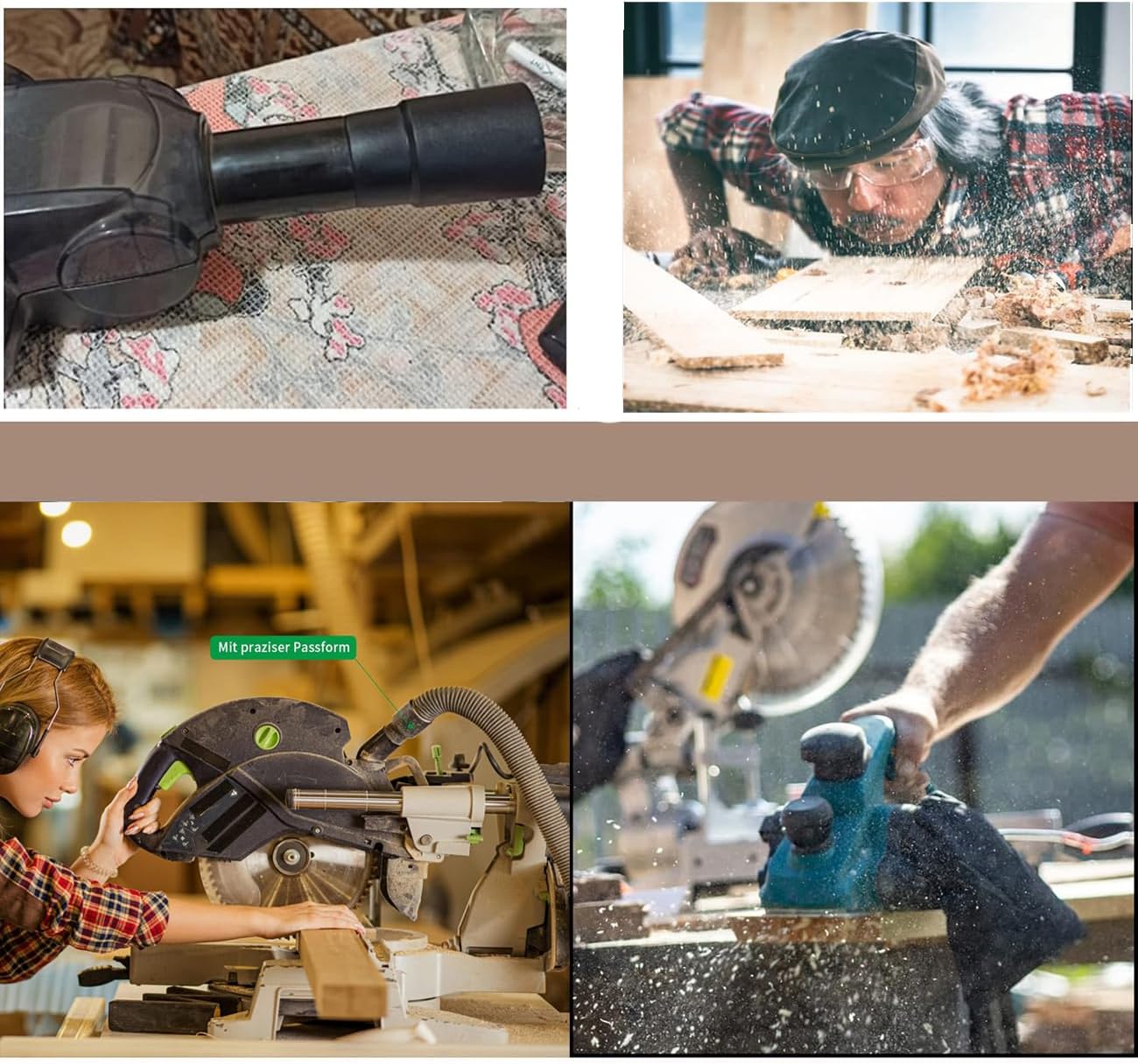 - 【 Vacuum Hose Attachments】: You can try combining this adapter together to have more options. Your circular saw, table saw, or orbital sander has an additional outlet for suction - but the vacuum cleaner or vacuum cleaner hose is too large.