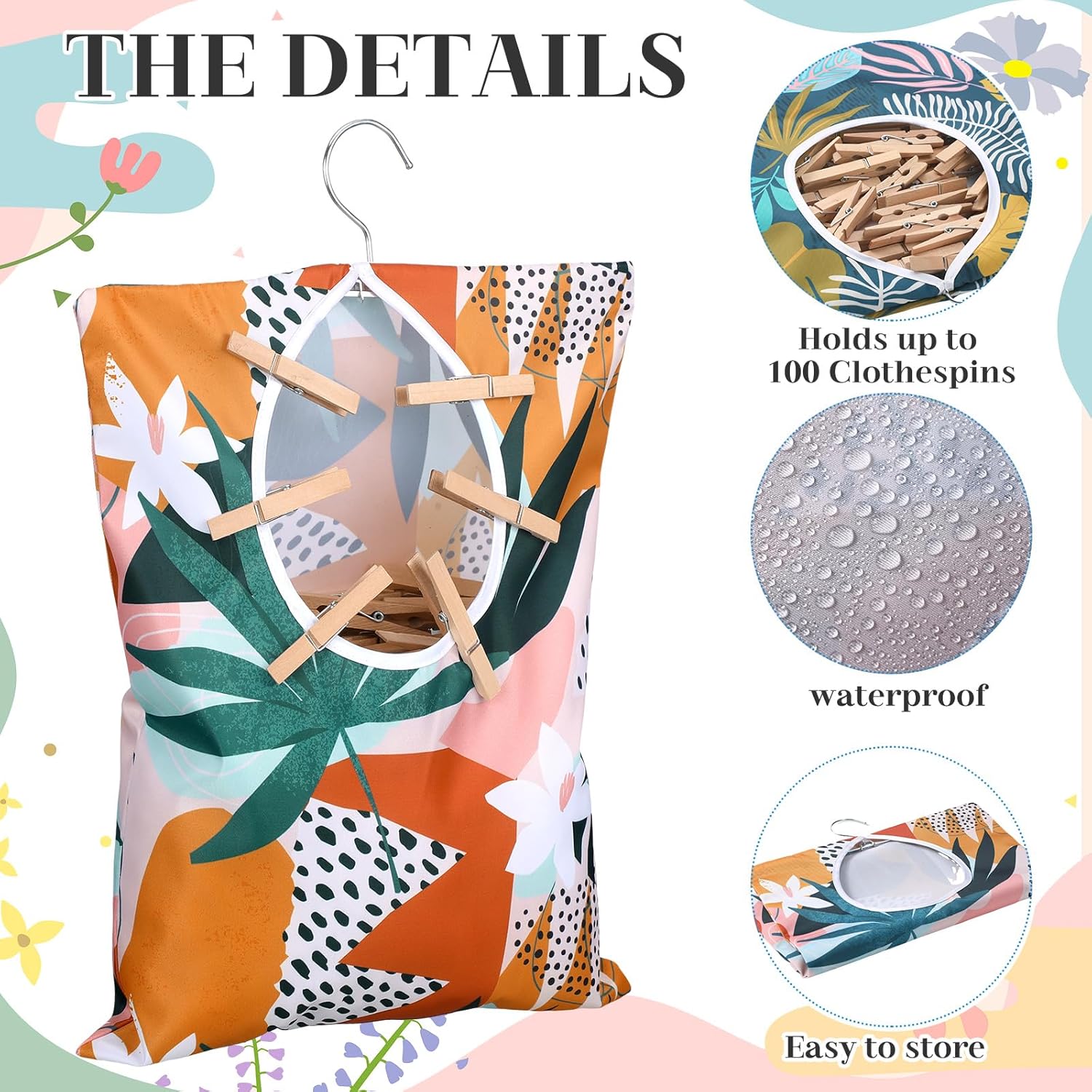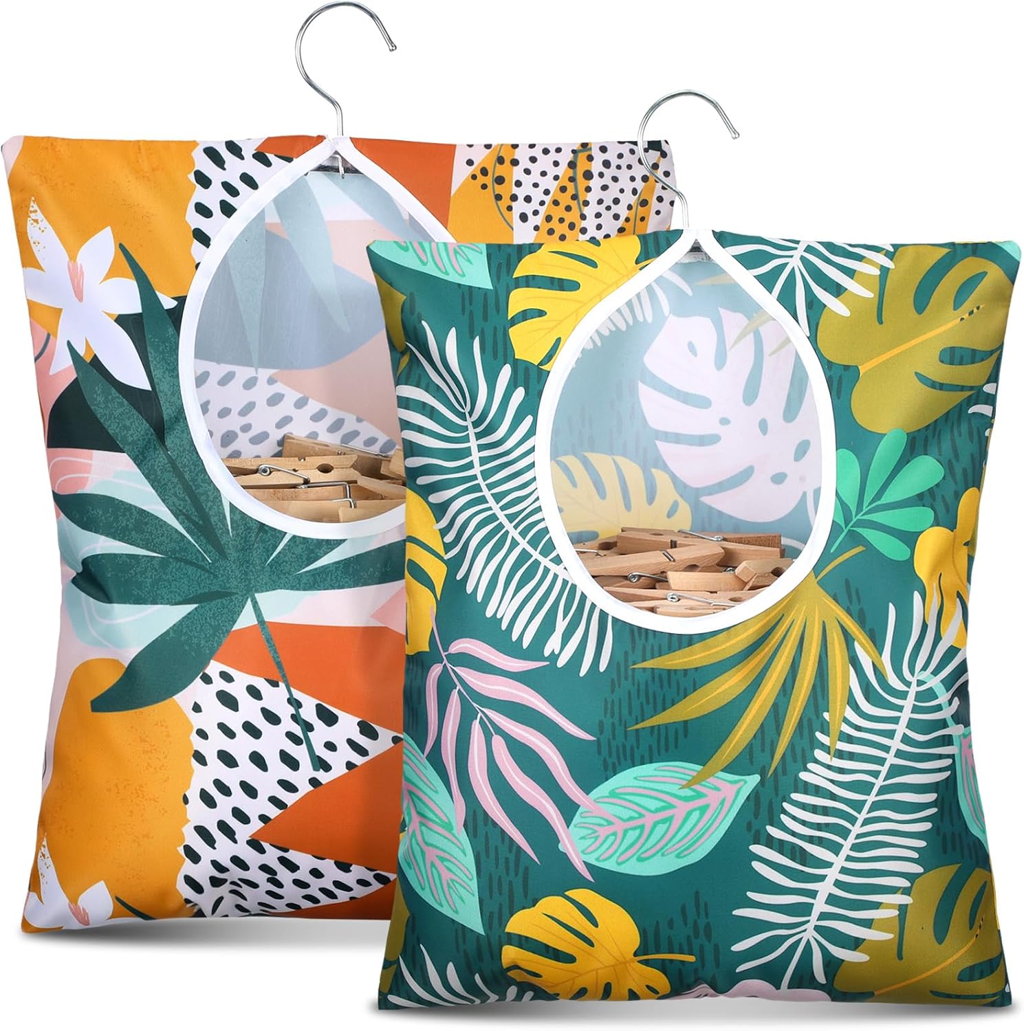 - Summer Theme: package includes 2 pieces of clothespin bags with hanger in different summer designs, both decorated with leaves pattern, full of tropical feeling, can add charm to your home; Proper quantity can satisfy your different daily use and replacement needs