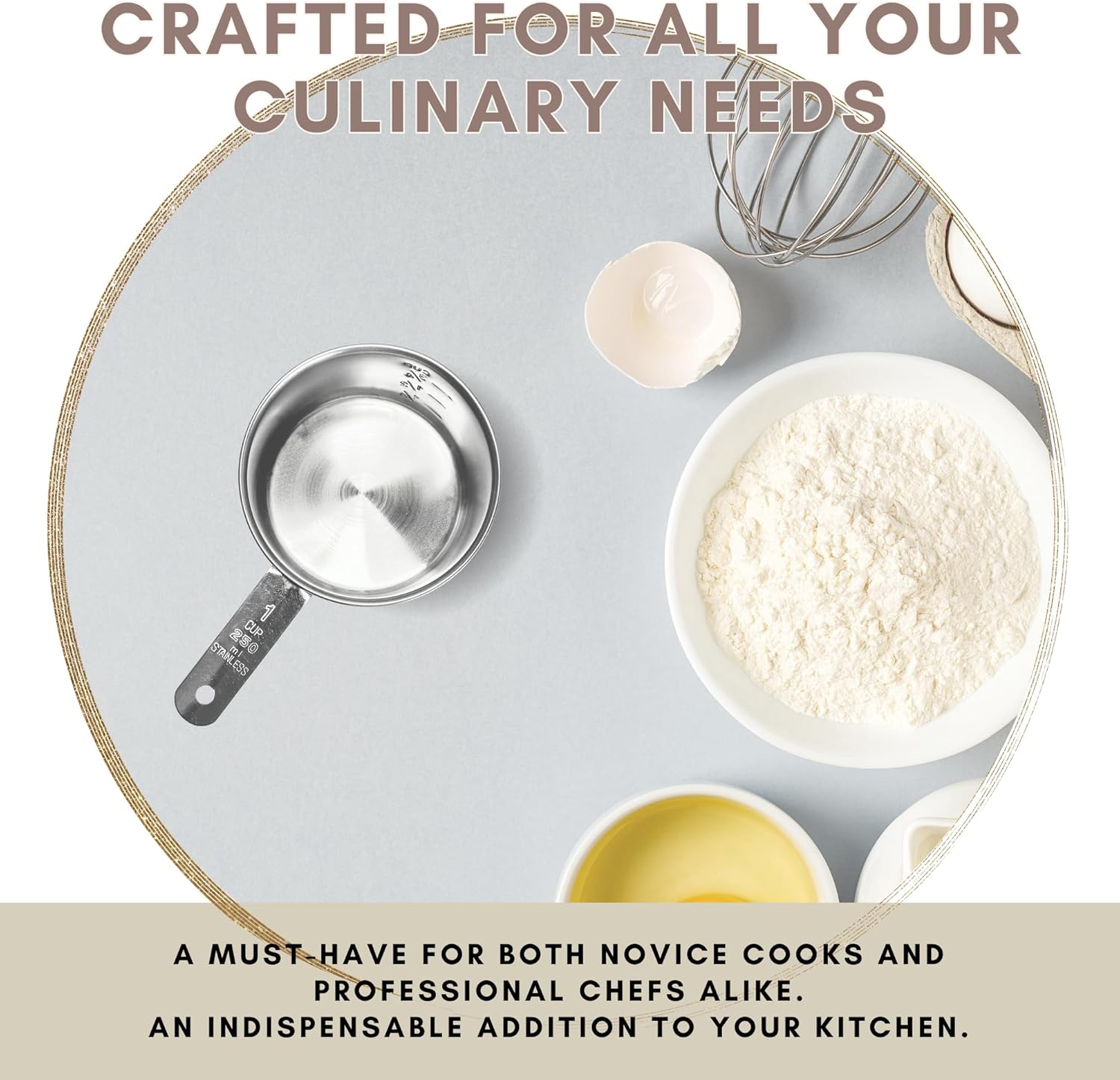 - Versatile Usage - This 1 cup stainless steel measuring cup is designed for more than just baking and cooking. Use it to measure dry goods like flour, sugar, oats, or grains, as well as liquids like milk, oil, and broth. It also serves as a reliable dog food scoop, perfect for portioning dry kibble or bird seed. Durable enough for sticky ingredients and dense materials, this measuring cup is an all-in-one solution for home kitchens, meal prep, or pet care routines.