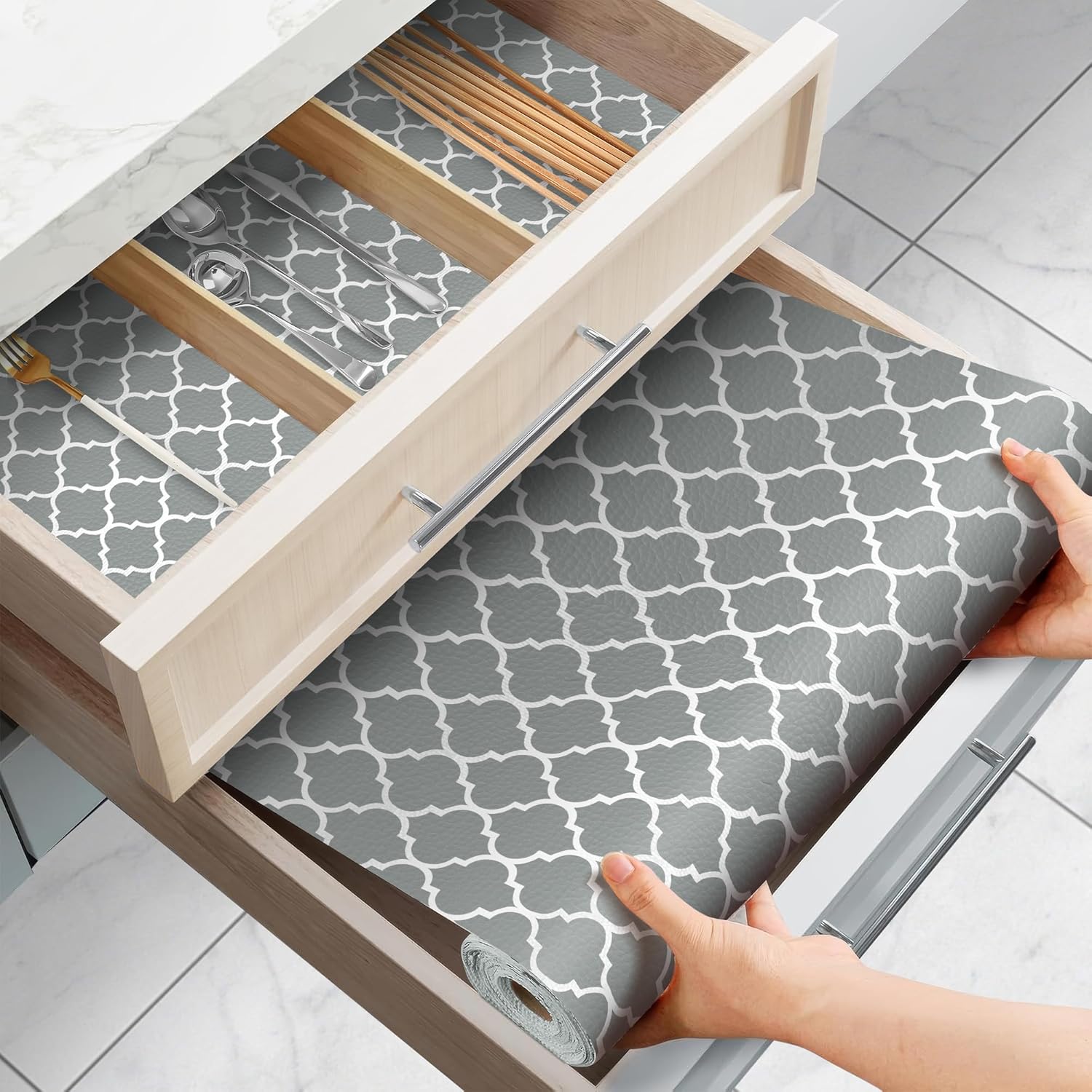 Drawer and Shelf Liner for Kitchen Cabinets Non-Adhesive, Non-Slip Cabinet Liner Shelf Paper Strong Grip Waterproof Easy to Clean for Kitchen Shelves Cupboard, Gray Lantern,12IN X 20FT