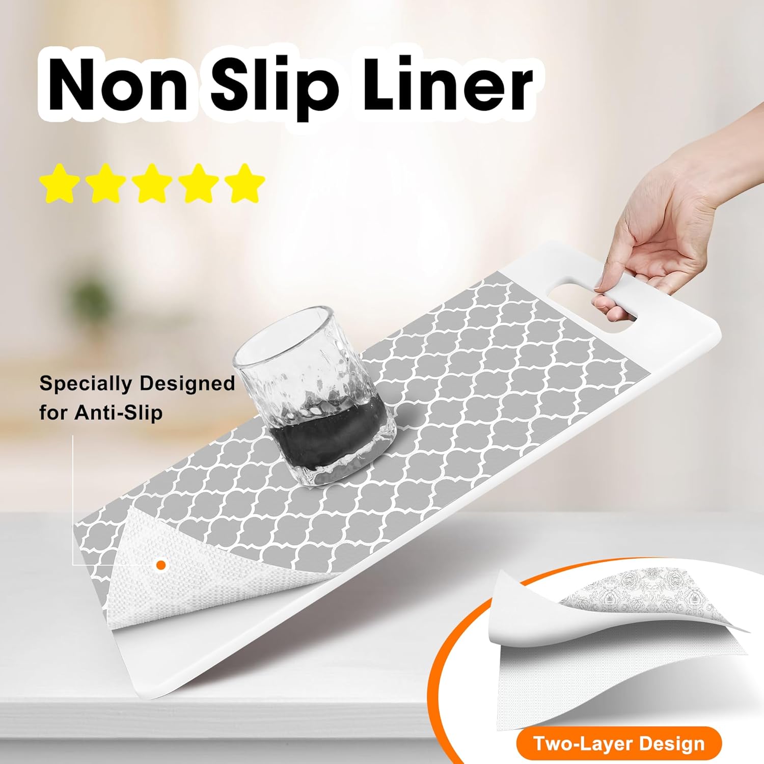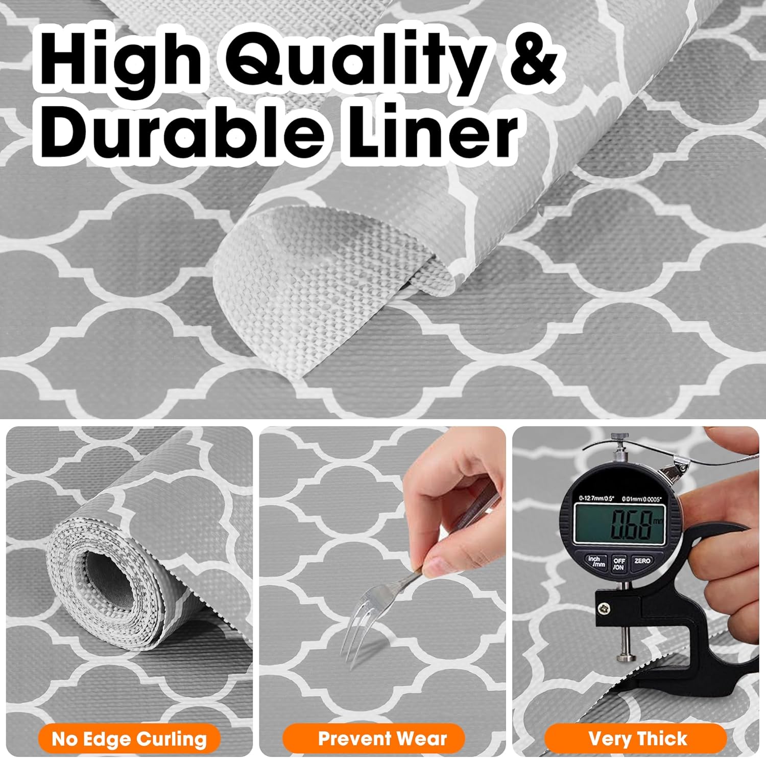 Shelf Liner for Kitchen Cabinets Non-Adhesive 12in X 10FT Cabinet Liners for Shelves Waterproof Thick Strong Grip Non Slip Drawer Liner Contact Paper for Cupboard Easy to Clean,Gray Lantern