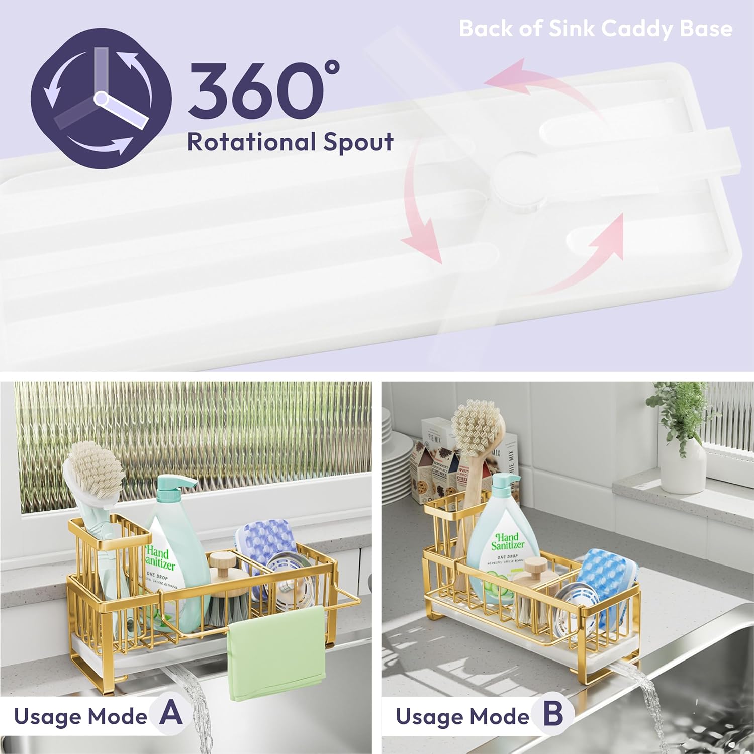- [Automatic Draining]: Are you tired of cleaning the countertop?SWTYMIKI sponge holder for kitchen sink with 360Β° rotatable draining pipe can help you! Just put the sink caddy next to the sink, the water will drain automatically into the sink