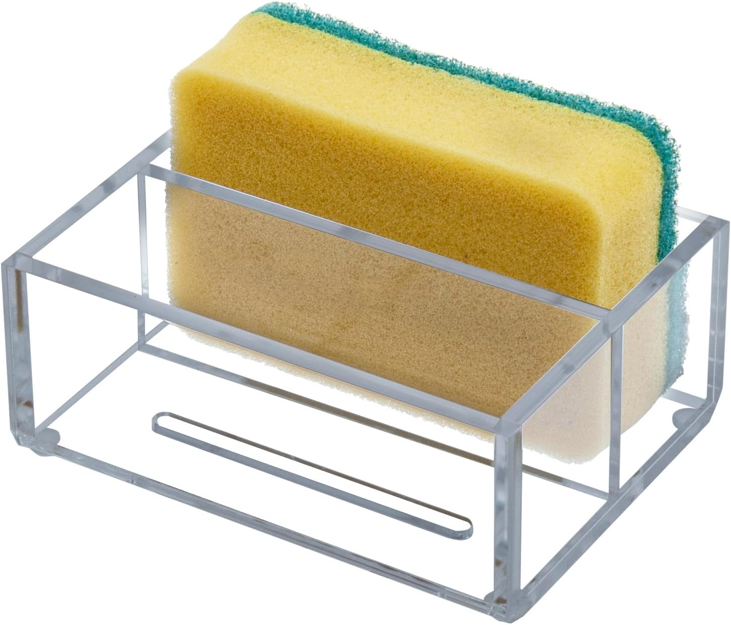 - Double sponge holder is crafted from 5mm thick premium clear acrylic that has a near invisible look that blends in seamlessly with any dΓ©cor **Includes transparent foot pads**