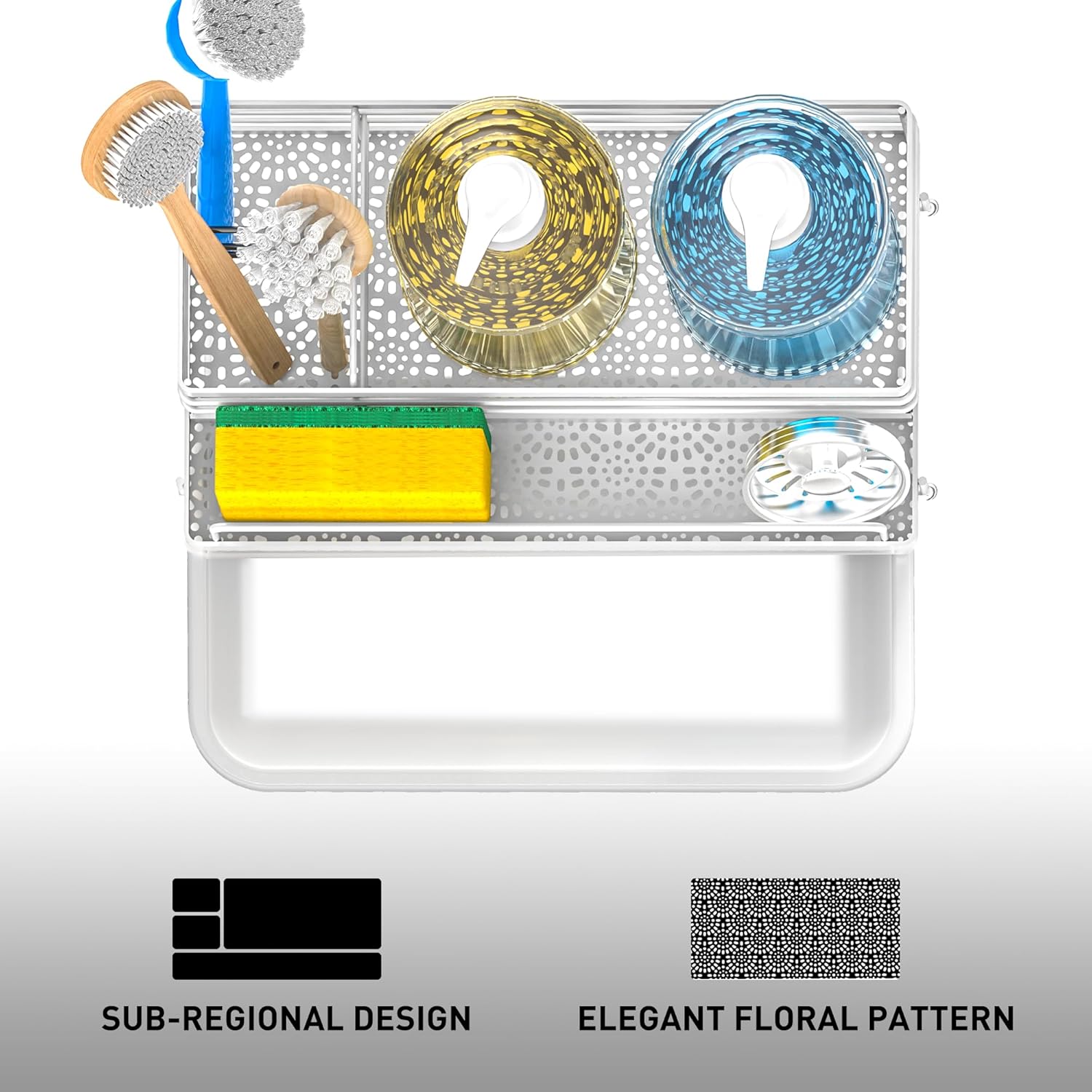 Cisily Sponge Holder for Kitchen, Sink Caddy Organizer, Kitchen Sink Accessories with Drip Tray, Rustproof and Non-Slip Kitchen Sink Sponge Holder, Kitchen Essentials for New Home(White)