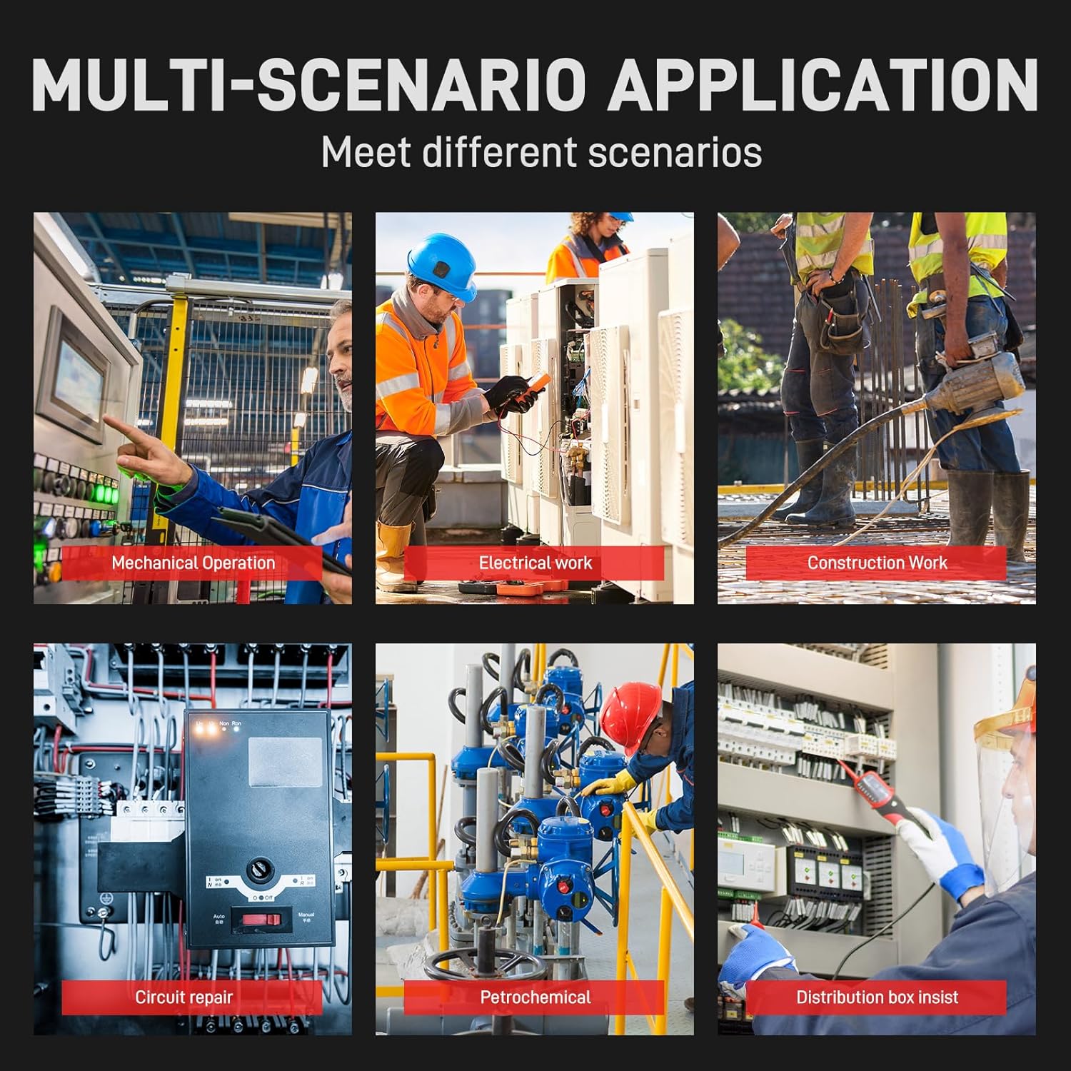 - Multi Application:Ideal for electricians, construction workers, and energy technicians handling battery maintenance, wiring, or electrical repairs. It provides reliable safety protection in high-voltage environments up to 400V